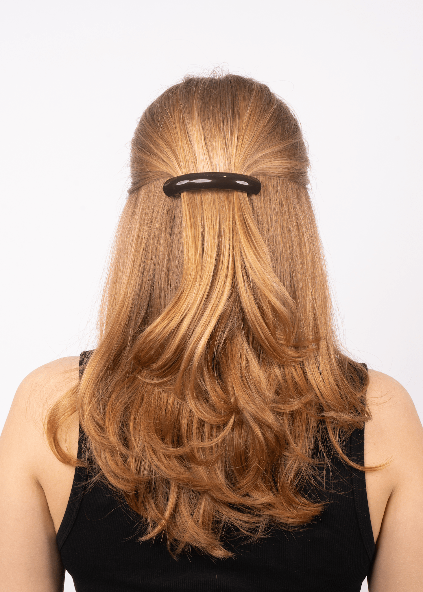 Curved Bone Clip is a simple and elegant clip with a classic expression. The deep, dark brown color and smooth finish give a sleek look that suits most styles. It's gently curved shape follows the contour of the head, making it comfortable to wear and securely hold hair in place - without pulling or slipping 🤎