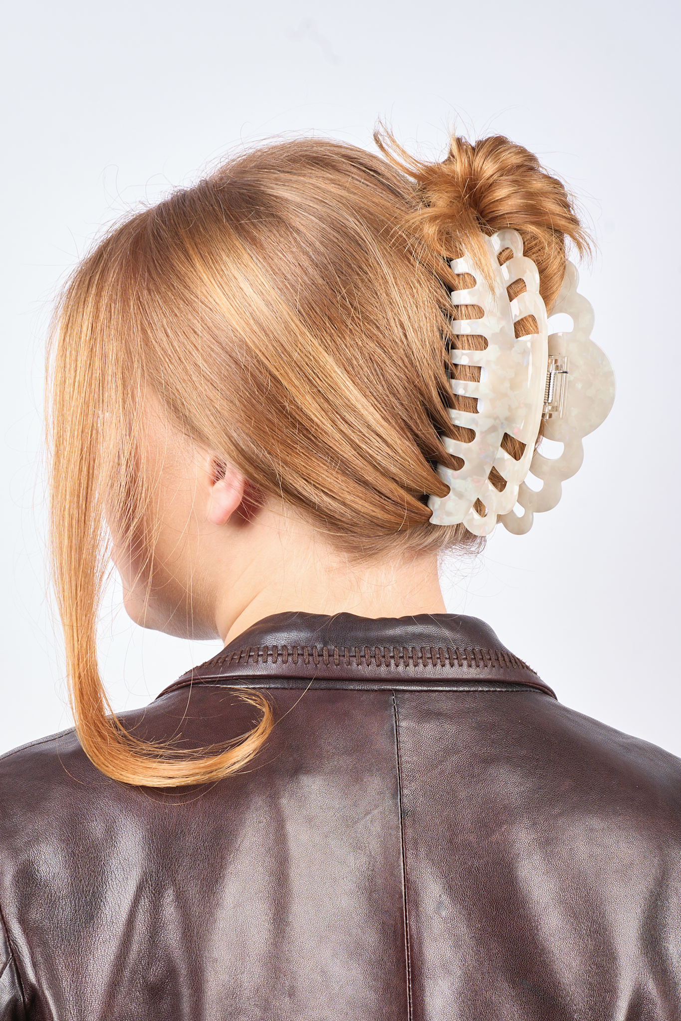 Emma Milky Giga is part of the Ready, Set, Bloom 25 collection, where modern design and functionality go hand in hand. The white, marbled finish gives the clip an elegant and timeless look, perfect for any hairstyle.