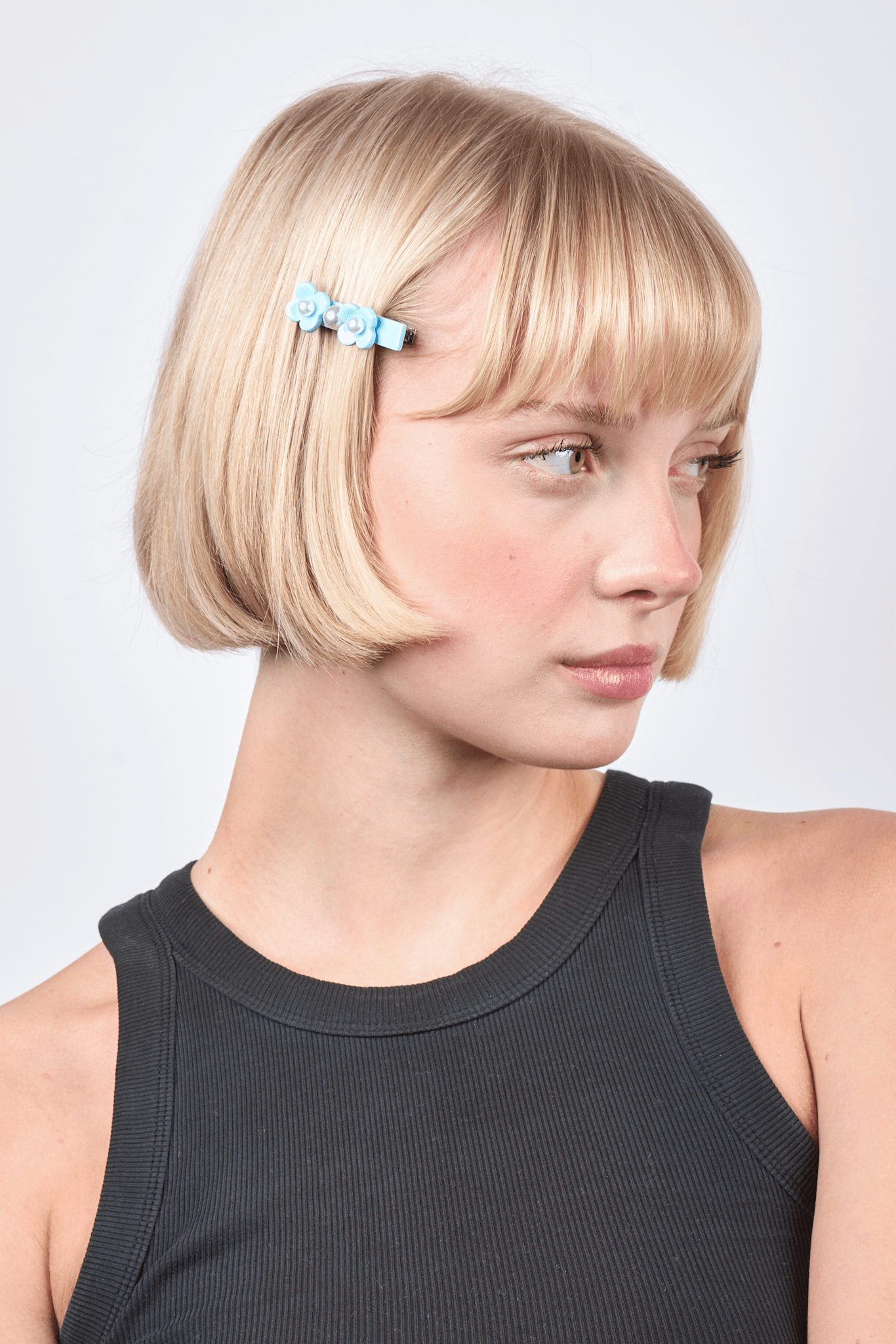 Give your hairstyle a fresh and feminine twist with the Flower Pearly Clip in a beautiful blue hue. This hair clip is adorned with two delicate flowers and three elegant pearls, adding a playful yet stylish touch to your look. Perfect for elevating any hairstyle with a simple yet eye-catching detail 🩵