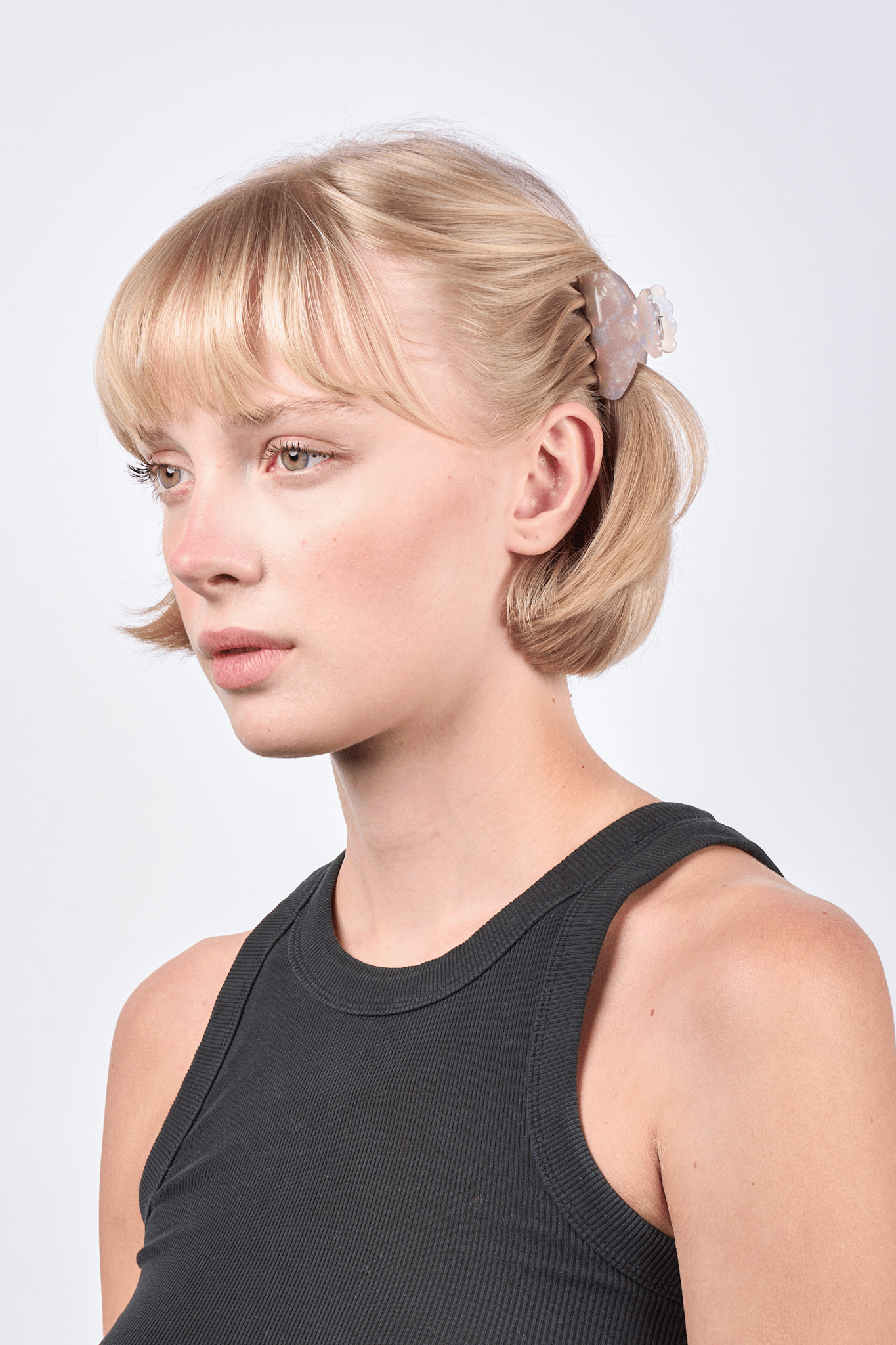 Helle Crushed Marble Mini fra SUI AVA – lille hårklemme med et unikt knust marmordesign, ideel til at tilføje et stilfuldt og sofistikeret touch til dine frisurer.