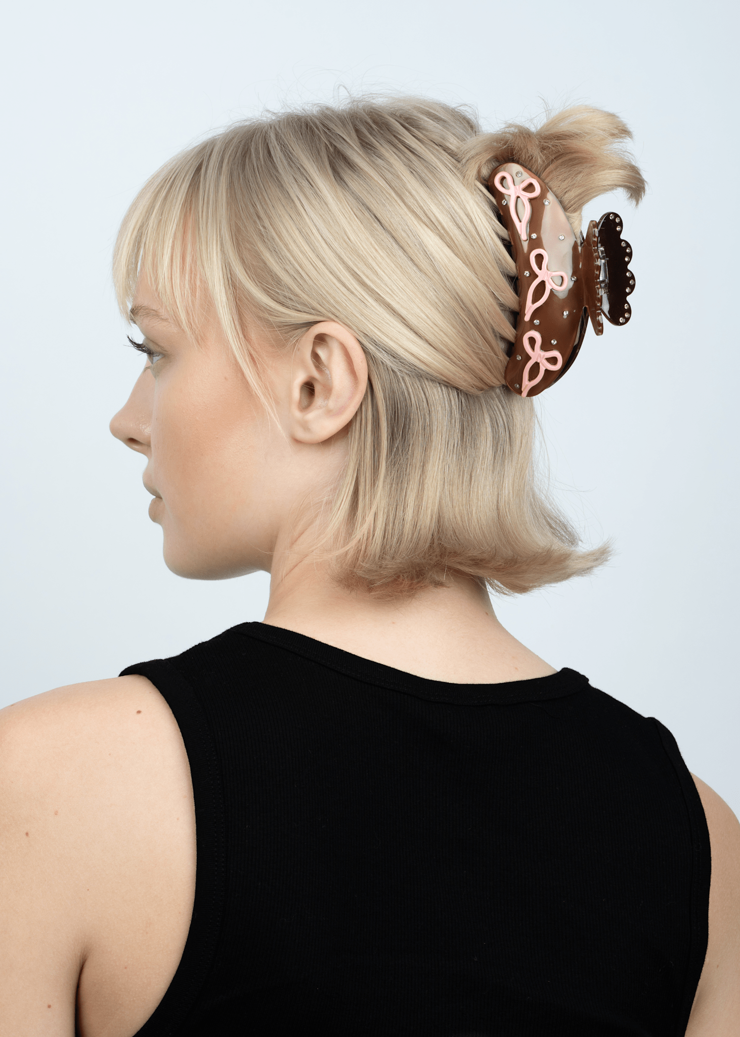 This beautiful hair claw is decorated with delicate bows and shimmering rhinestones that catch the light and add an elegant detail to your look 🎀