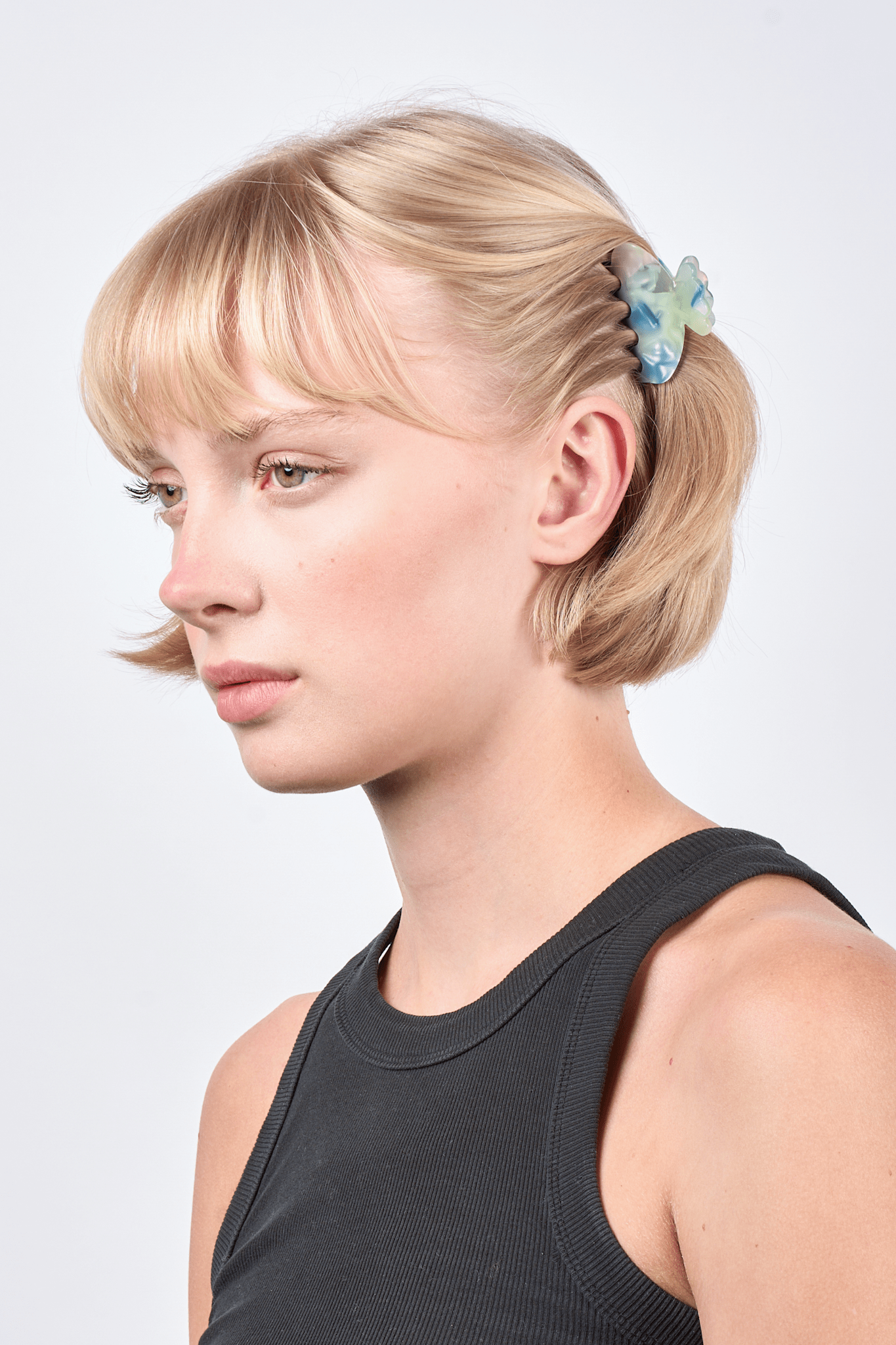 Use Helle Marble Mini to keep bangs out of your face, gather small sections, or add a colorful element to a half-up hairstyle. Perfect for both everyday wear and festive occasions.