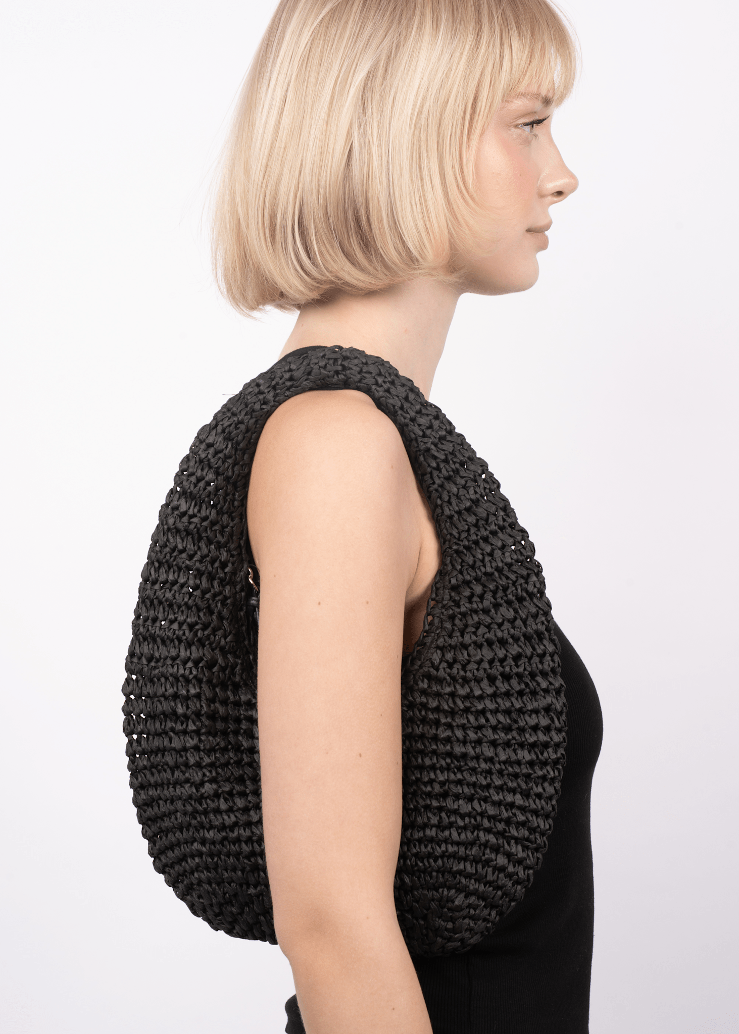 The perfect combination of simplicity and style! The Casual Bag in black features a beautiful woven design that gives the bag a relaxed and modern look. Its spacious shape makes it ideal for your essential items, whether you're heading to a café, a day trip, or a night out 🖤