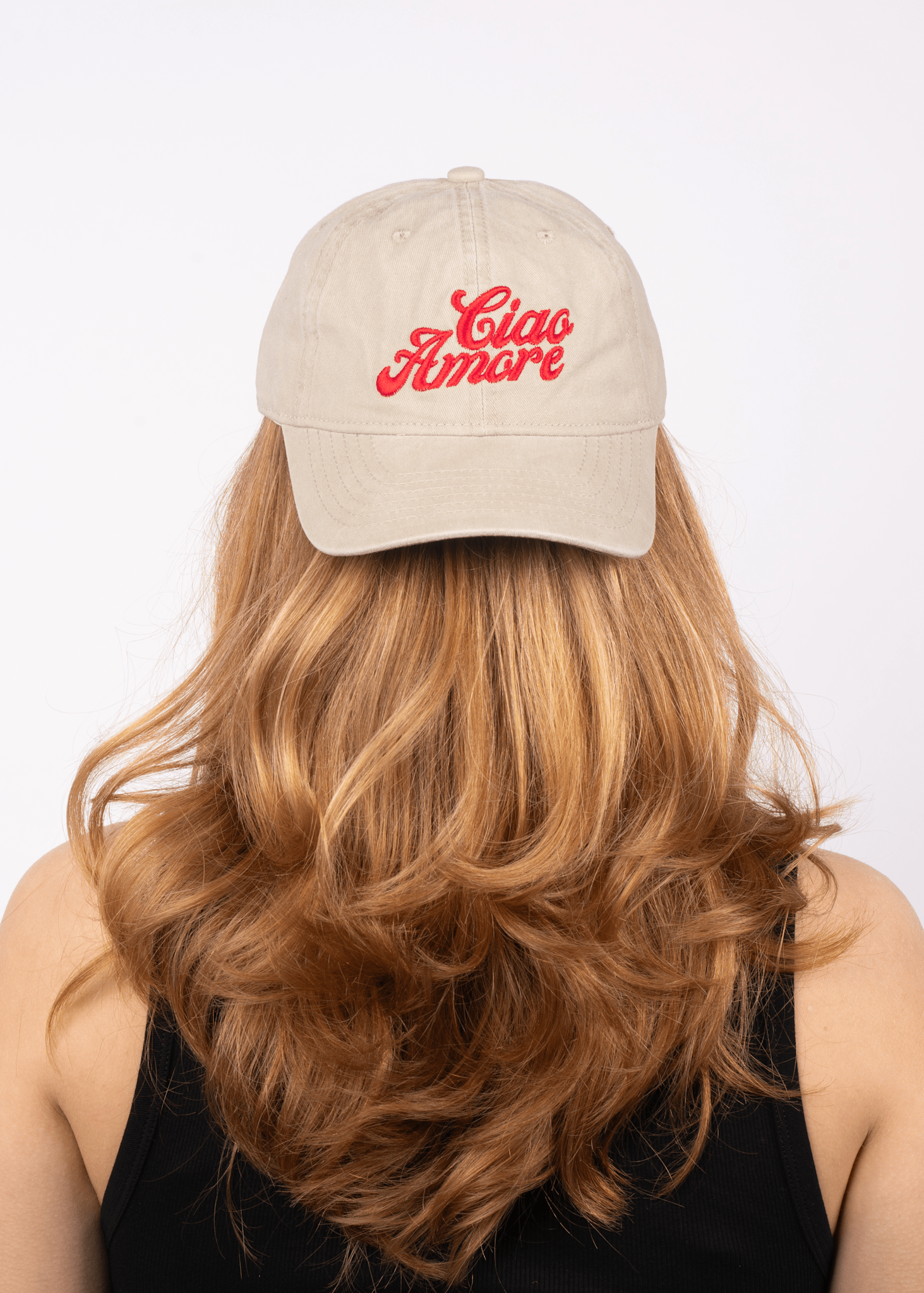 Everyday Italia Cap in beige is a stylish statement piece that combines Italian charm with a relaxed attitude. The embroidered Ciao Amore logo gives a personal and trendy expression, while the vintage-washed finish adds a cool, laid-back vibe 🇮🇹