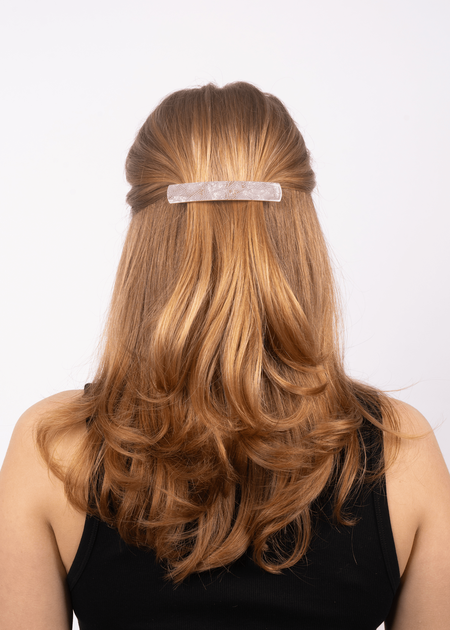 Use the Serpente Clip to keep hair away from your face or as an elegant detail in an updo. Its fine texture and subtle pattern make it easy to style with any wardrobe.