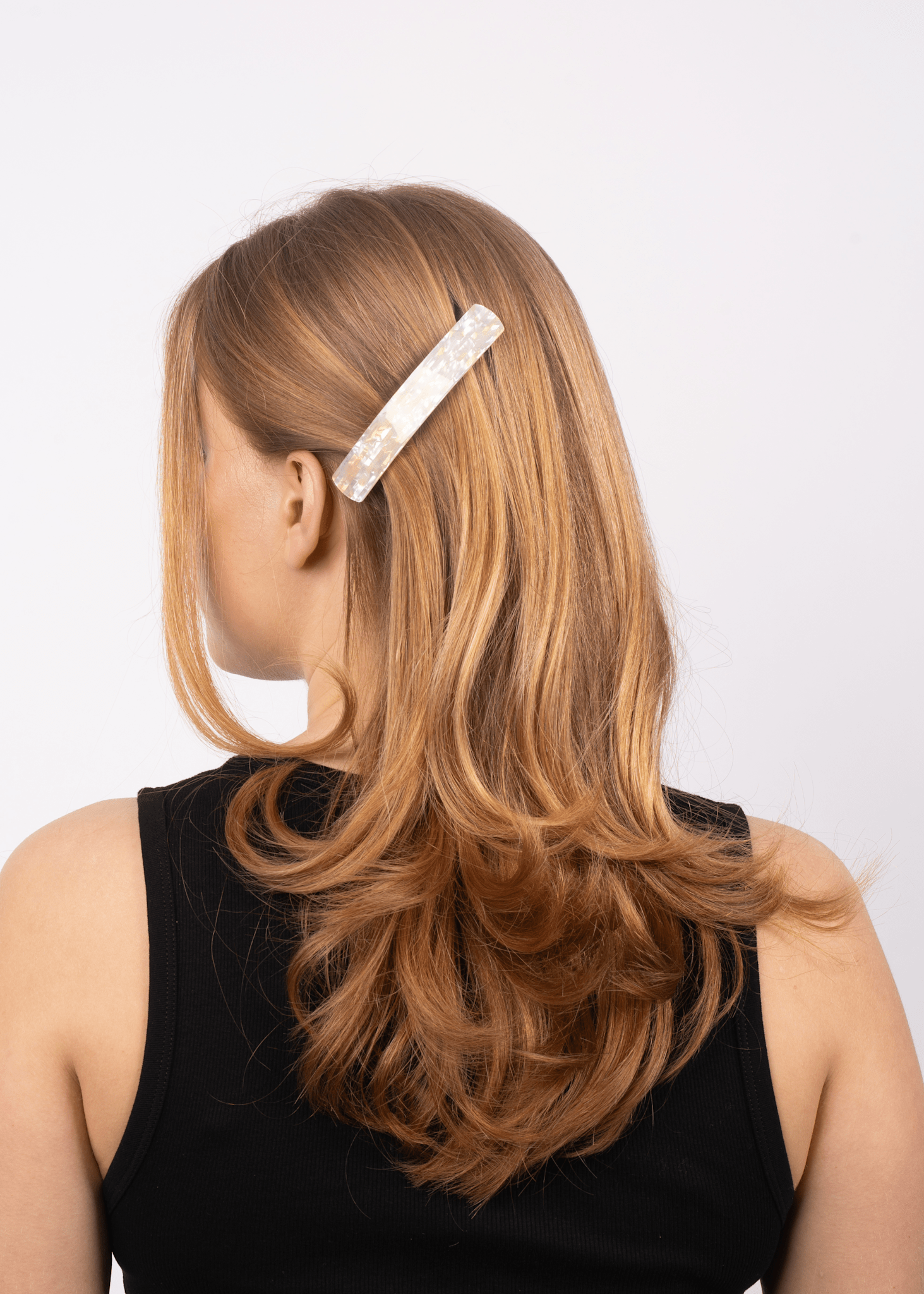 Add a touch of elegance to your hairstyle with the Vacanza Clip in a beautiful cream color. The delicate pearlescent sheen gives a sophisticated look, while the sturdy acrylic material ensures a strong grip to keep your hair in place all day 🍋