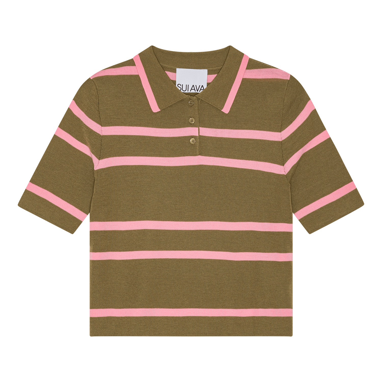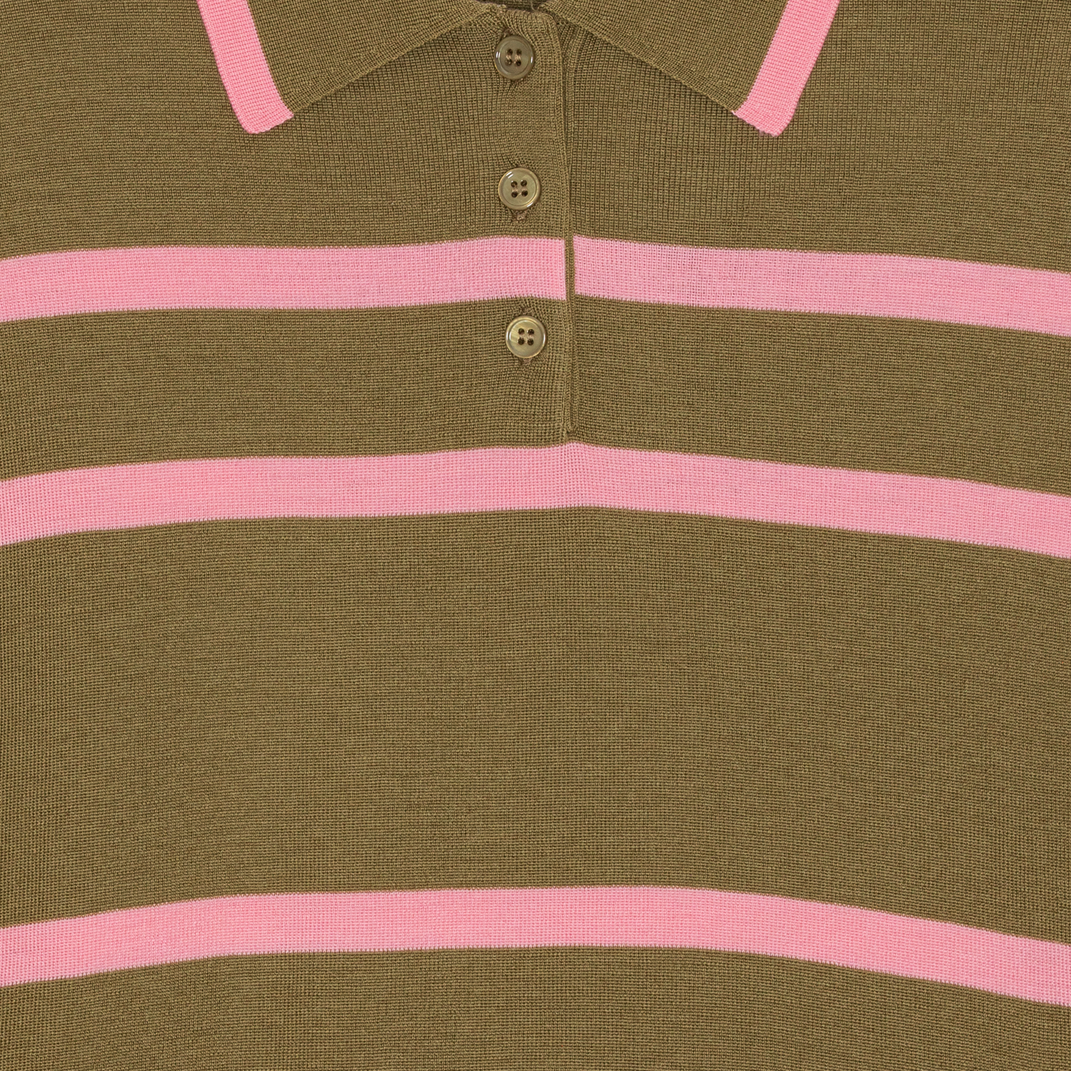 Add a pop of color to your outfit with our Striped Merino Polo. Knitted in a light and soft merino blend, it features slim buttons and a classic collar. The bold pink stripes on an olive-green base create a playful yet stylish look. Perfect with both jeans and high-waisted skirts, whether you’re aiming for casual or more polished vibes 🌸