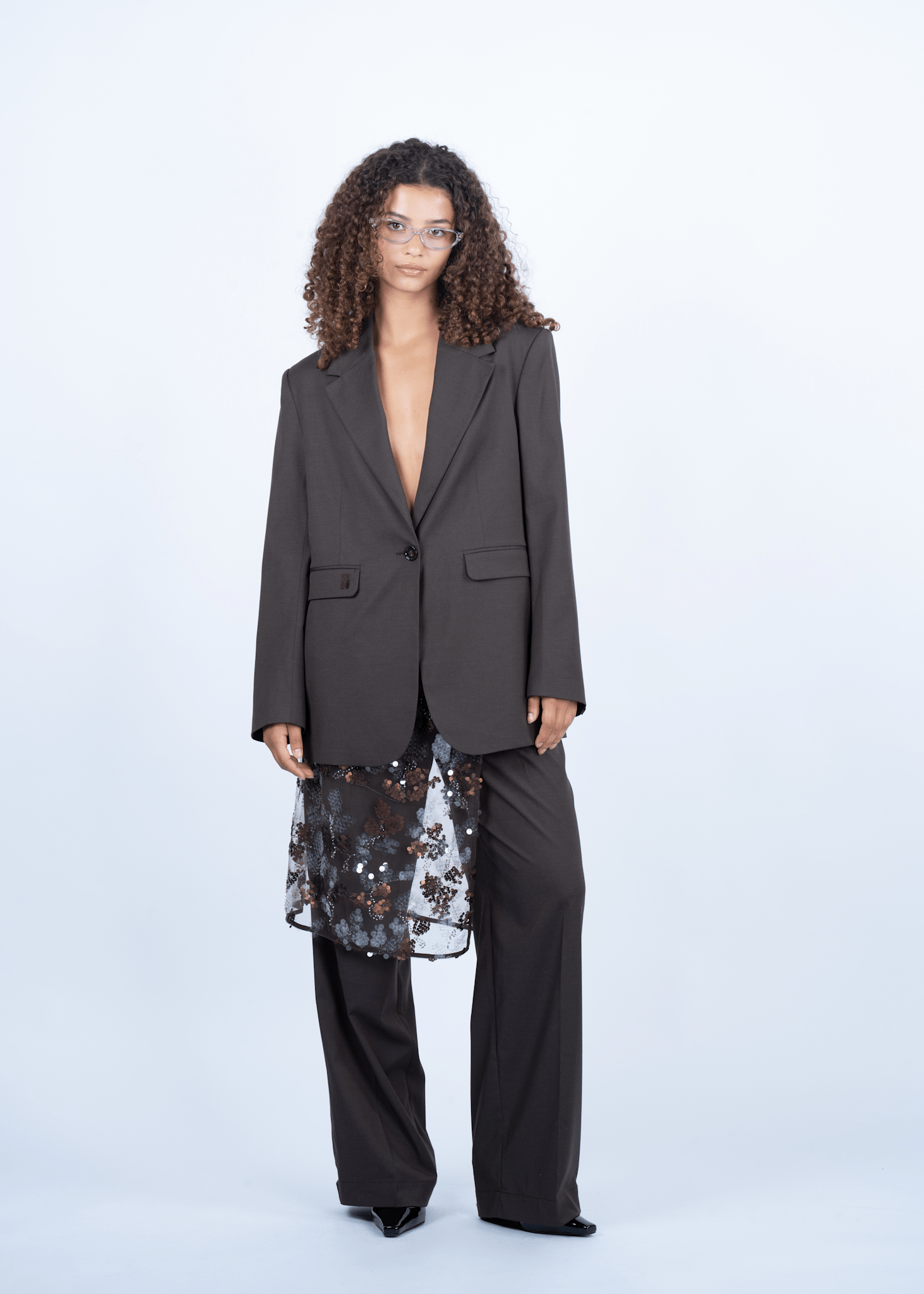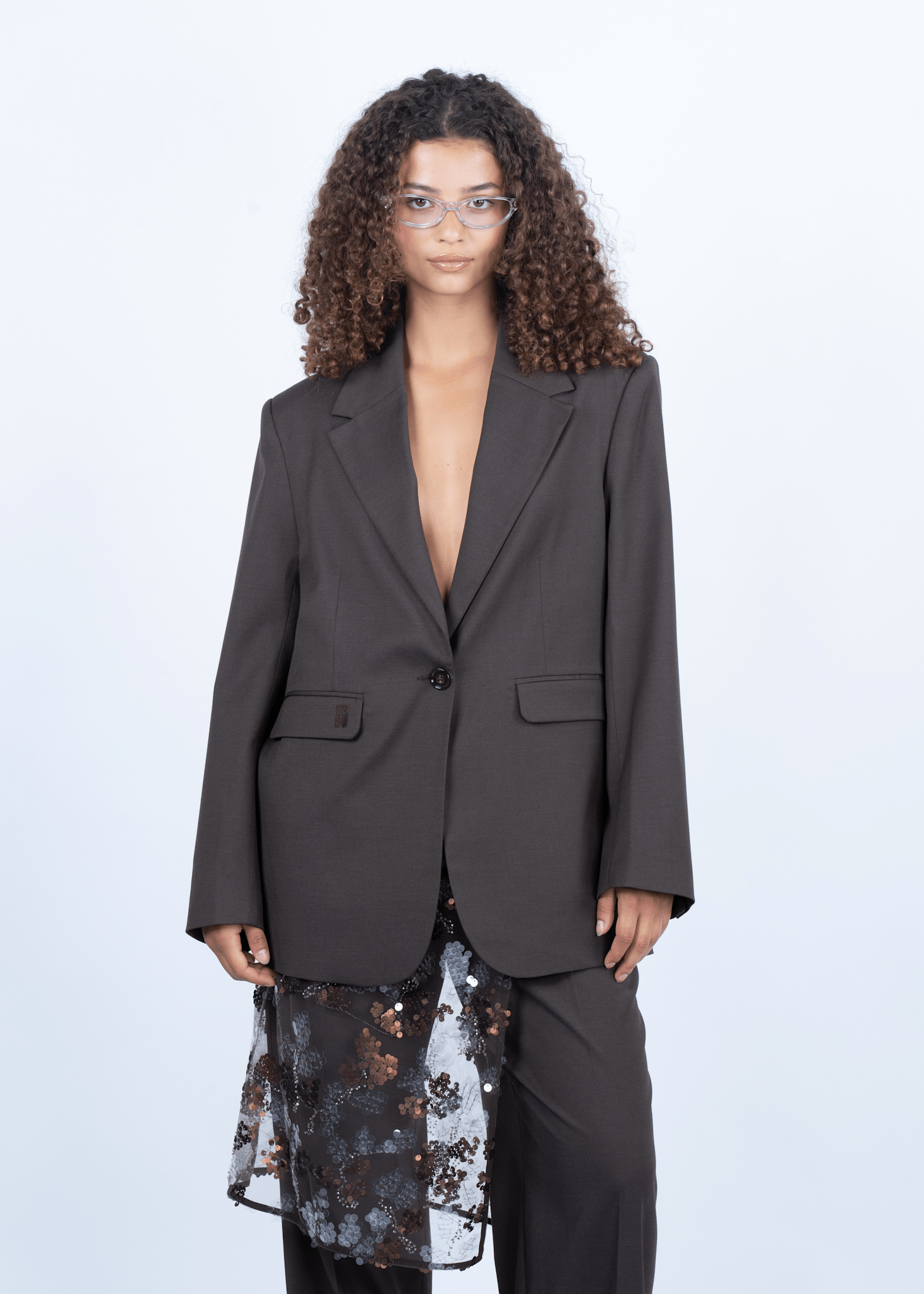 A classic statement piece with a modern twist. This oversized blazer features a sharp cut and relaxed fit, making it perfect for both the office and weekend plans. Designed with a single-button closure, wide lapels, and two front flap pockets - all in a warm brown tone that pairs effortlessly with everything from denim to dresses 🤎