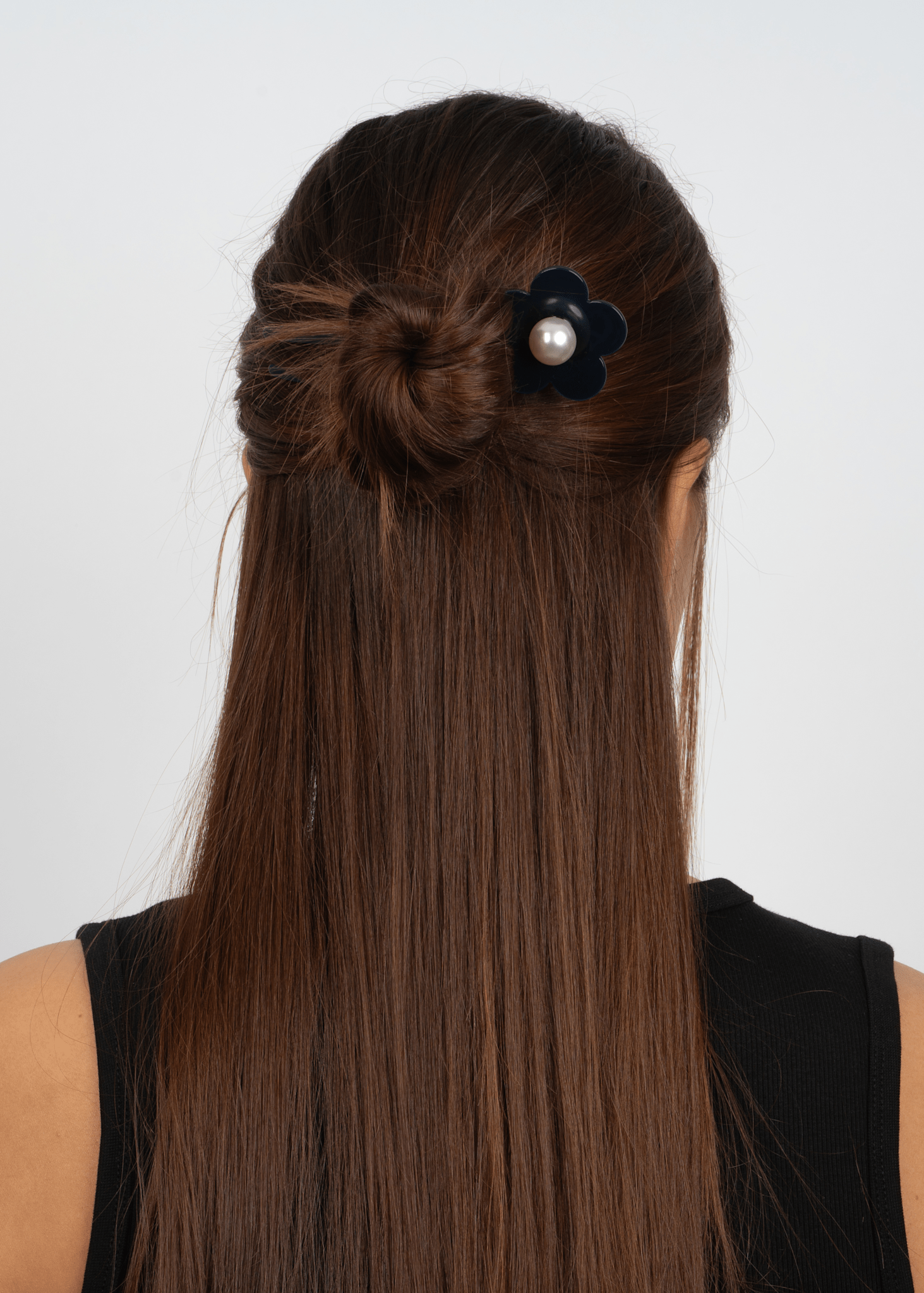 Add a feminine and elegant touch to your hairstyle with the Eva Classic Flower Clip in Midnight Blue. Shaped like a beautiful flower, this decorative hair clip features a delicate pearl at its center, adding a luxurious flair. The deep midnight blue hue gives it a classic look that pairs effortlessly with different hairstyles and outfits 💙