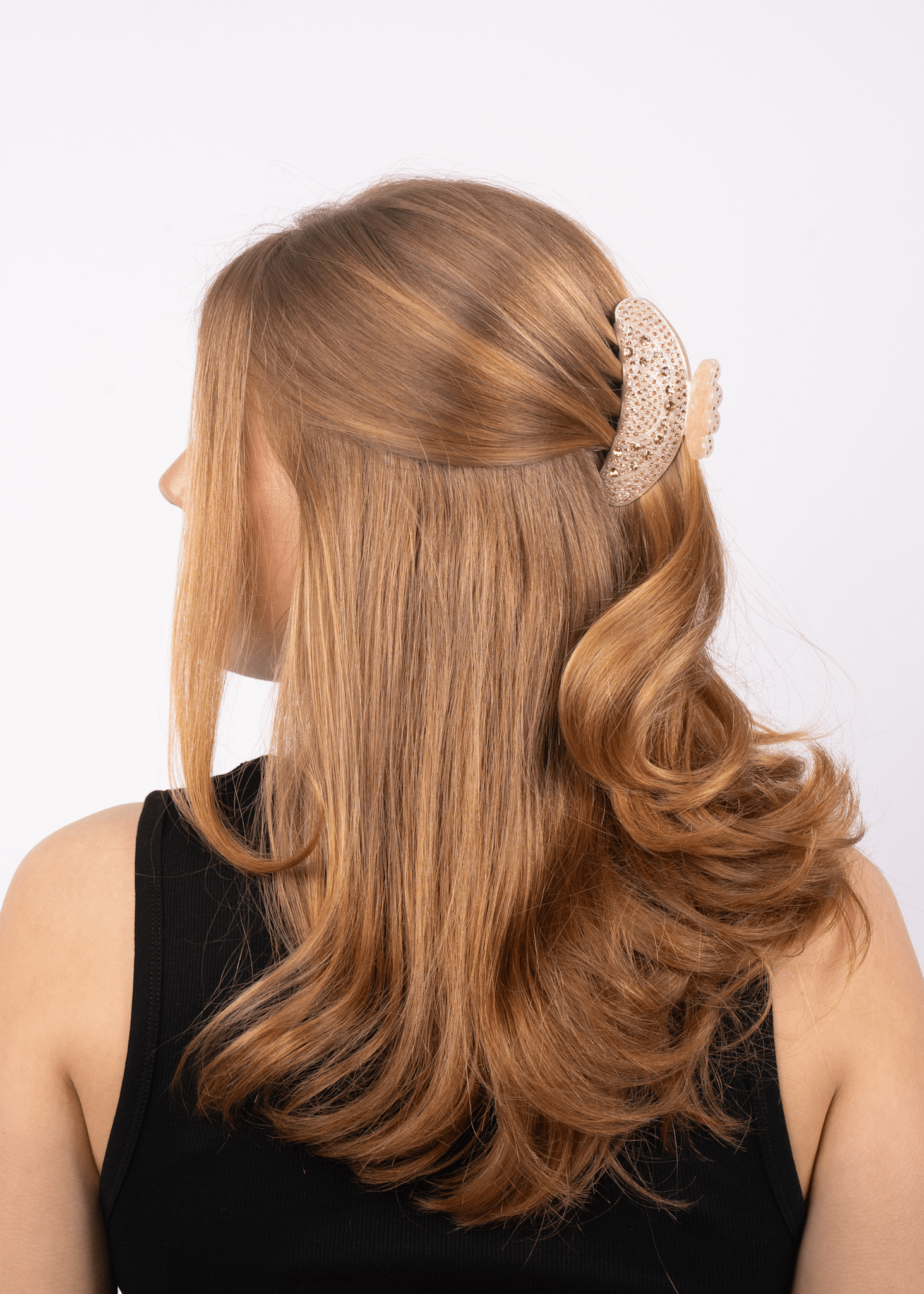 Helen Bella Middle in peach is a beautiful hair claw decorated with sparkling rhinestones in warm tones, adding a glamorous touch to any hairstyle 🌸