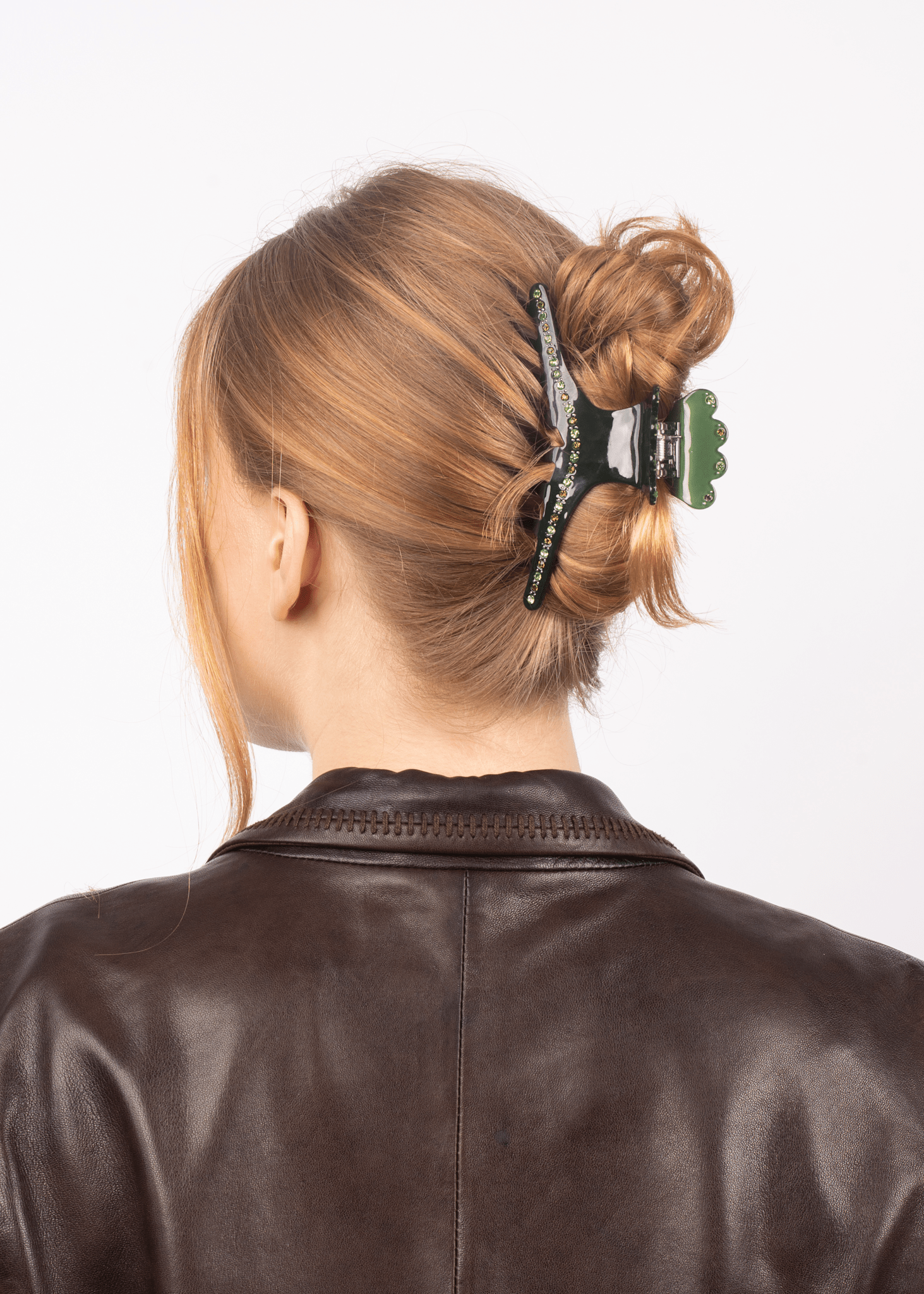 Helen Harvest Clip Biggest in green brings together functionality and a hint of glamour. The deep green color and glittering rhinestones create an elegant, eye-catching look - without going over the top. With its extra-large size and curved shape, this clip offers a strong grip, making it ideal for long and thick hair that needs extra hold 🌿
