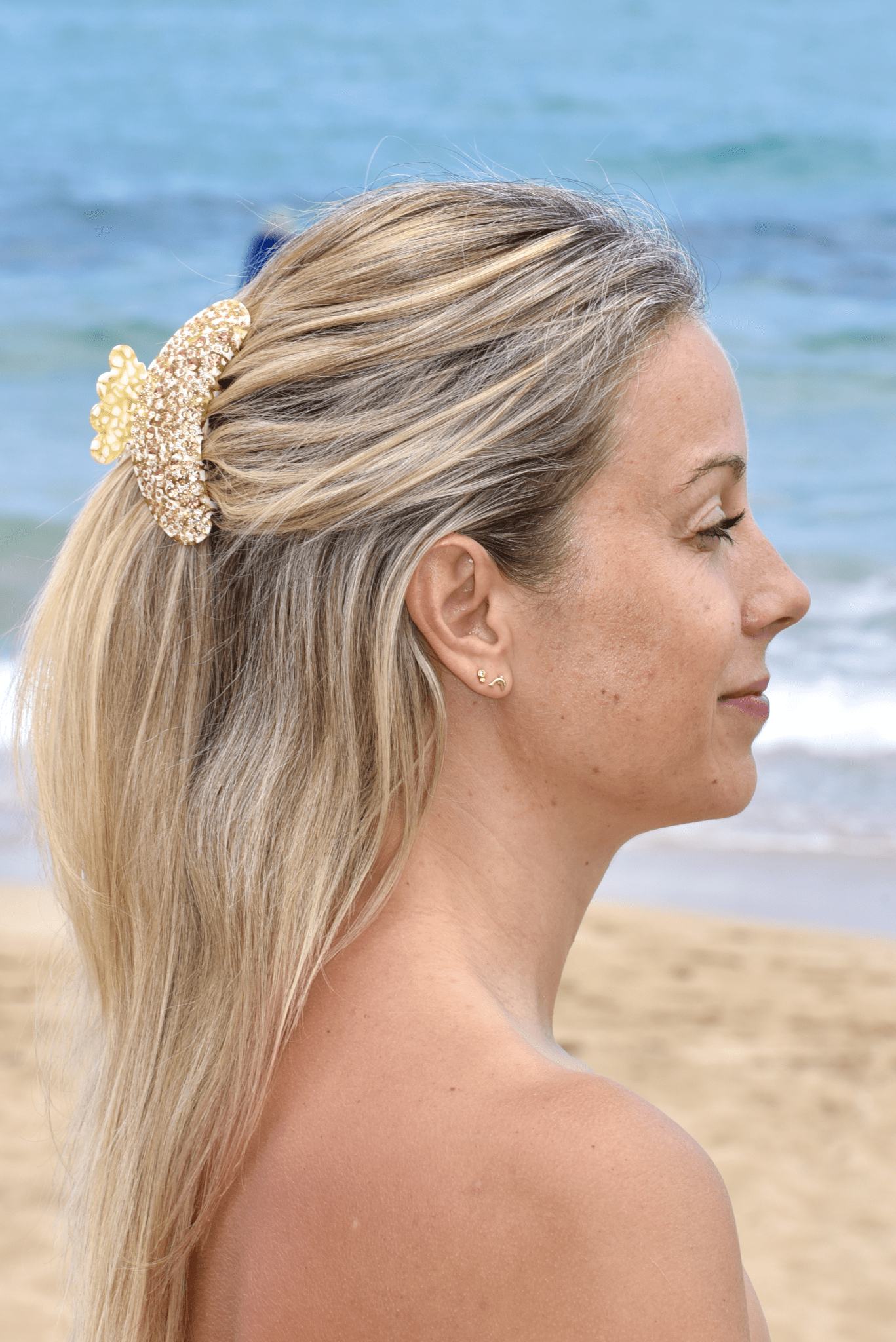 Helen Lemonade Middle is a fresh and sparkling medium-sized hair claw that radiates sunshine, fun, and a touch of glam.