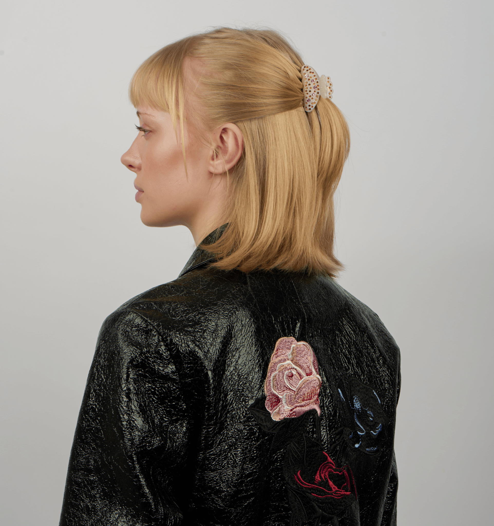Give your hair a colorful lift with Helen Palma Mini - a small hair claw that combines sparkling pink and orange crystals with an elegant white base. The playful design adds a touch of personality and sparkle to your everyday look ✨