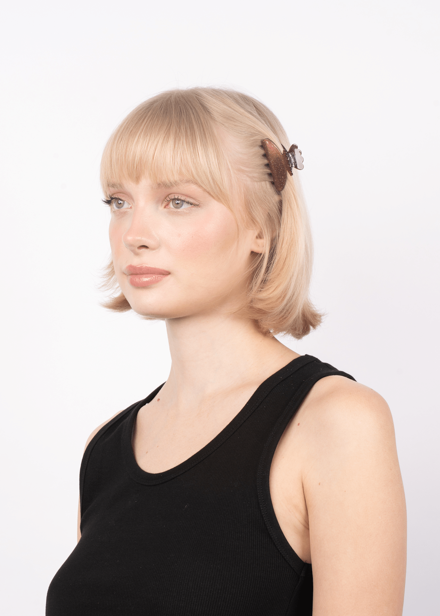 Helle Moonlight Mini is a small hair claw with a warm brown hue and a subtle shimmer that catches the light in the loveliest way. Its compact size makes it ideal for short or fine hair - or for when you just want to quickly clip part of your hair up. The color goes with almost everything, while the shimmer adds a playful twist to your look 🤎