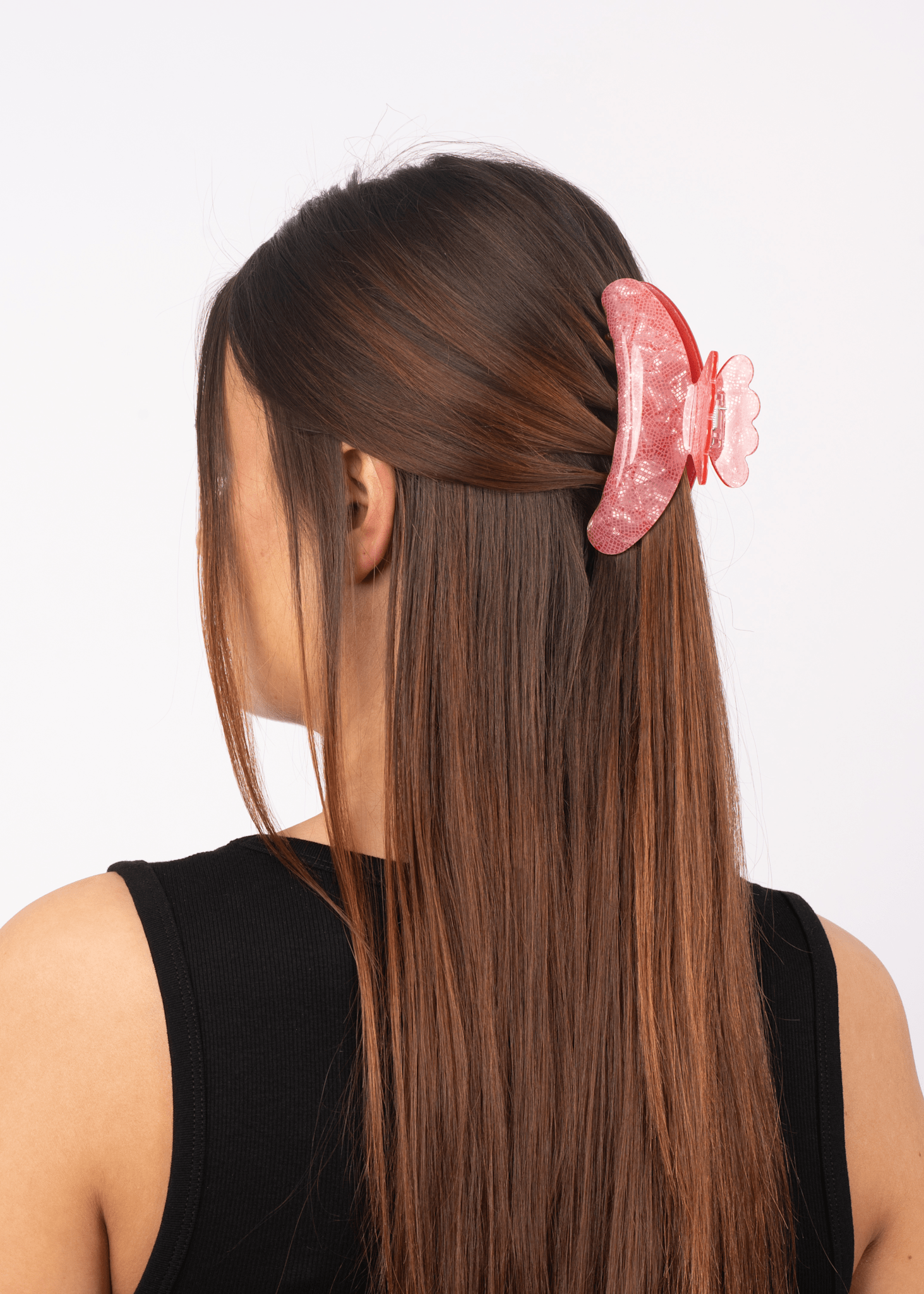 Helle Serpente Big in red is a hair clip that combines a beautiful design with a strong grip. The deep red color offers a warm and vibrant expression, while the mother-of-pearl finish reflects light to create a stunning play of colors. The delicate pattern adds an extra detail, giving the claw an exclusive and stylish look ❤️