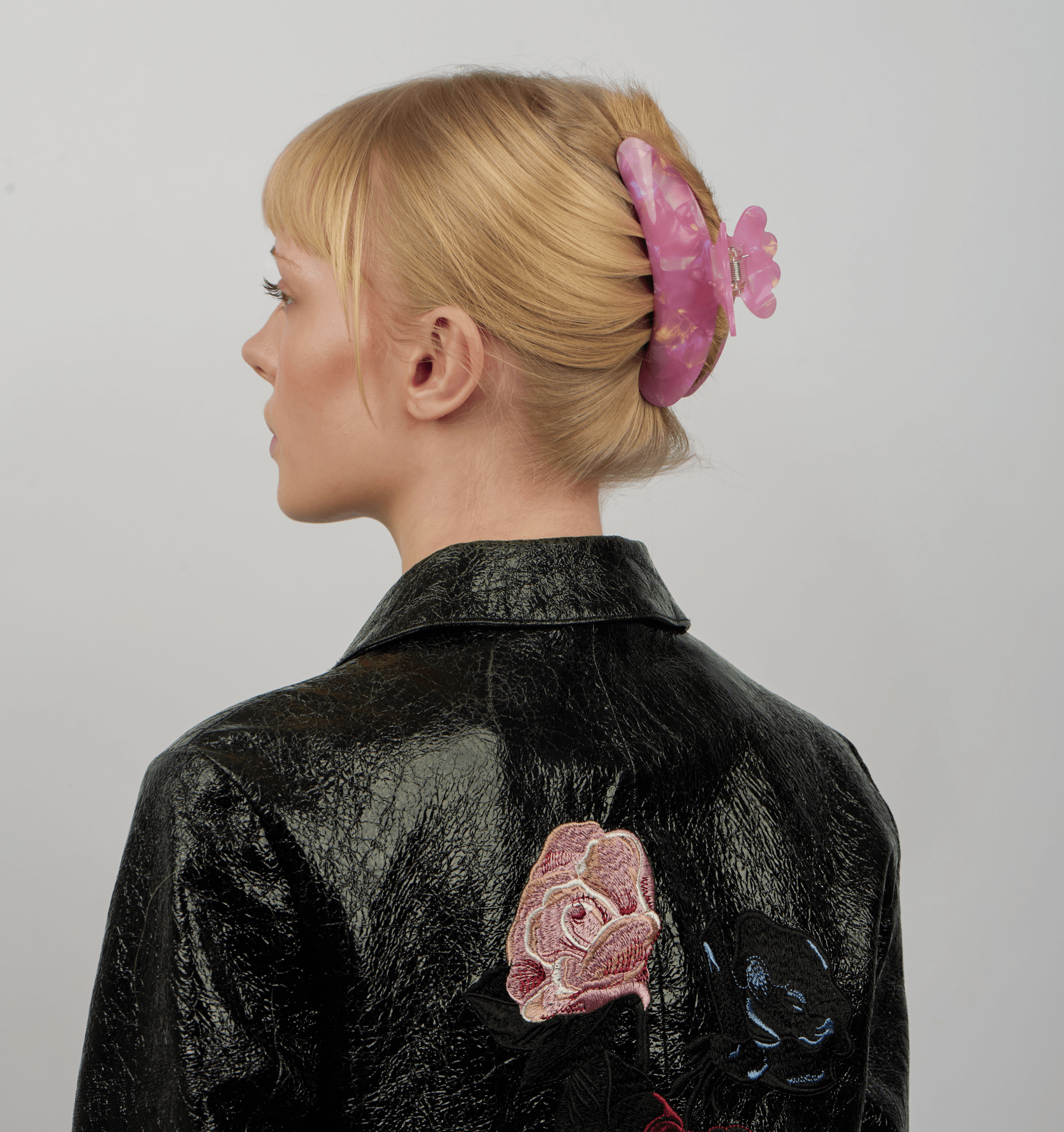 Helle Sunkissed Biggest is an elegant and functional hair claw in a beautiful pink pearlescent design.