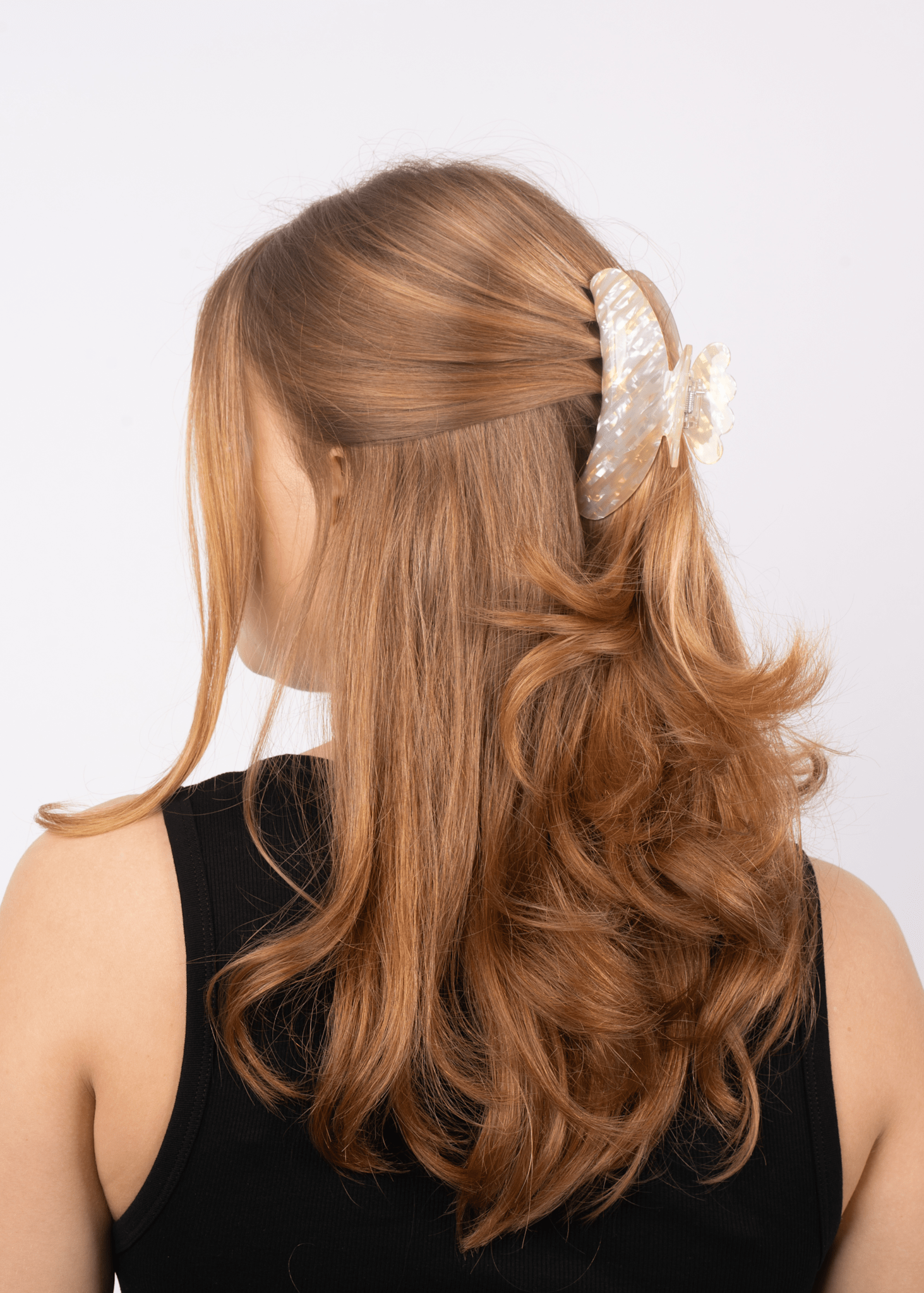 Use Helle Vacanza Big to gather all your hair in an updo, create an elegant half-up, or as a decorative element in loose hair. The large size makes it perfect for thicker hair and ensures your hairstyle stays put all day.