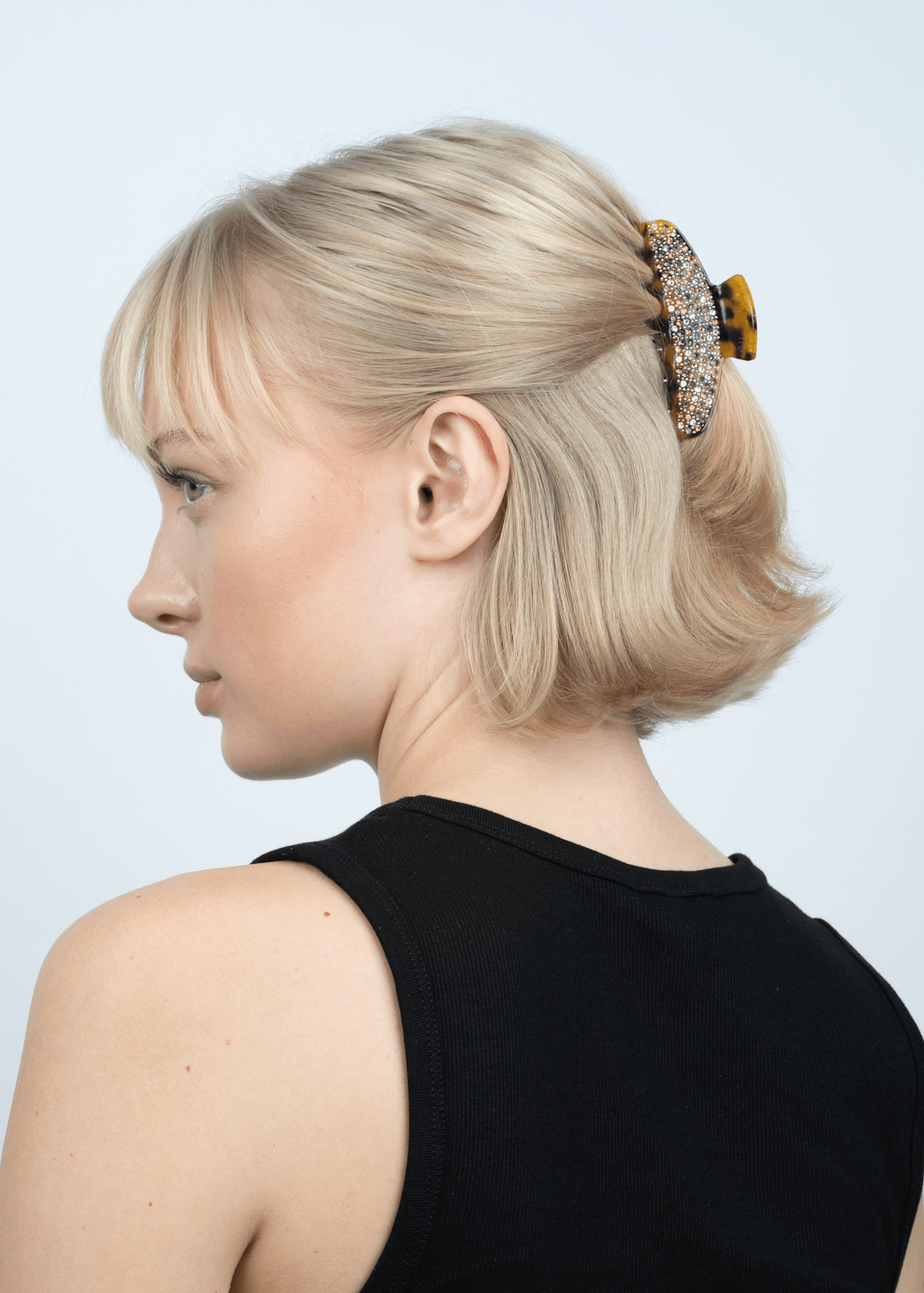 With the Ida Evergreen Middle in Brown Leo, you get a hair claw that blends trendy design with an elegant and glittering look, perfect for adding a touch of glamour to your hairstyle.