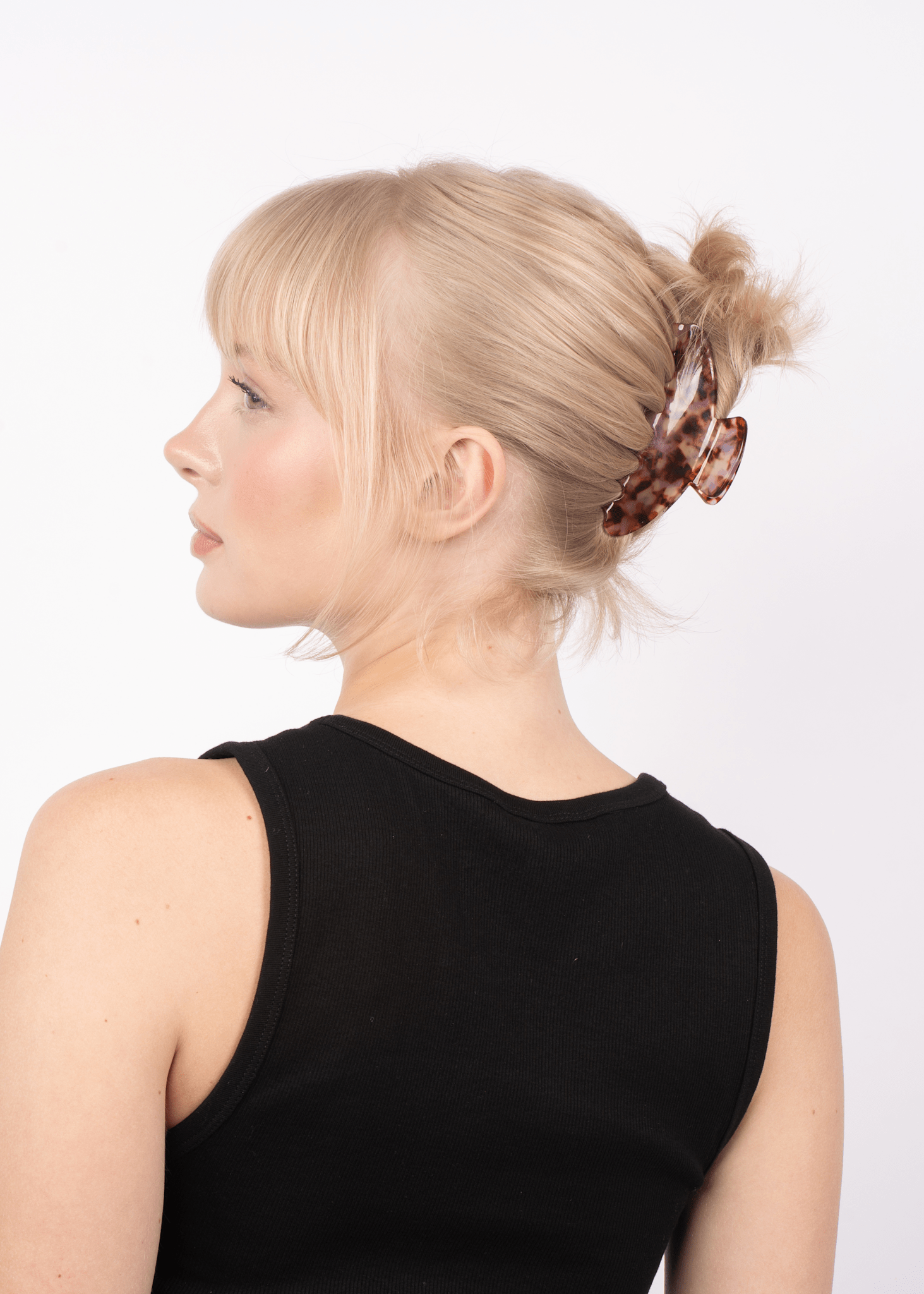Ida Tawny Big is the perfect hair claw for those who want to combine functionality with a sophisticated look. The warm brown marbled pattern offers a classic expression with a twist - ideal for celebrating everyday moments. With its solid size and strong grip, it's perfect for long, thick, or voluminous hair 🤎