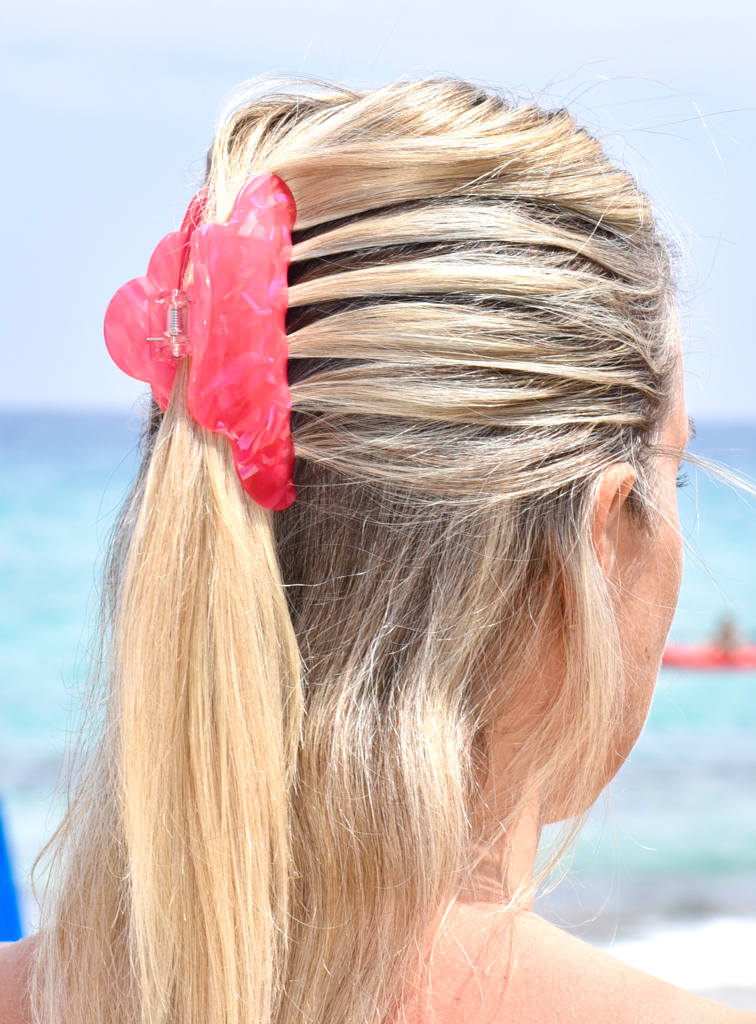 Bring a touch of summer to your styling with Lene Piña Colada Biggest! This oversized hair claw in a refreshing pink hue is designed to give your hair a playful and colorful look. The marbled pattern adds a unique twist, while the sturdy construction ensures a strong grip all day long 🩷