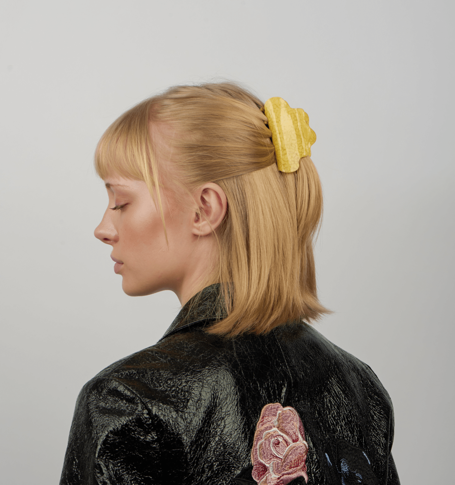With its wavy silhouette and eye-catching yellow color, this large hair claw adds a fresh touch to your hairstyle - and keeps your hair securely in place all day long 💛