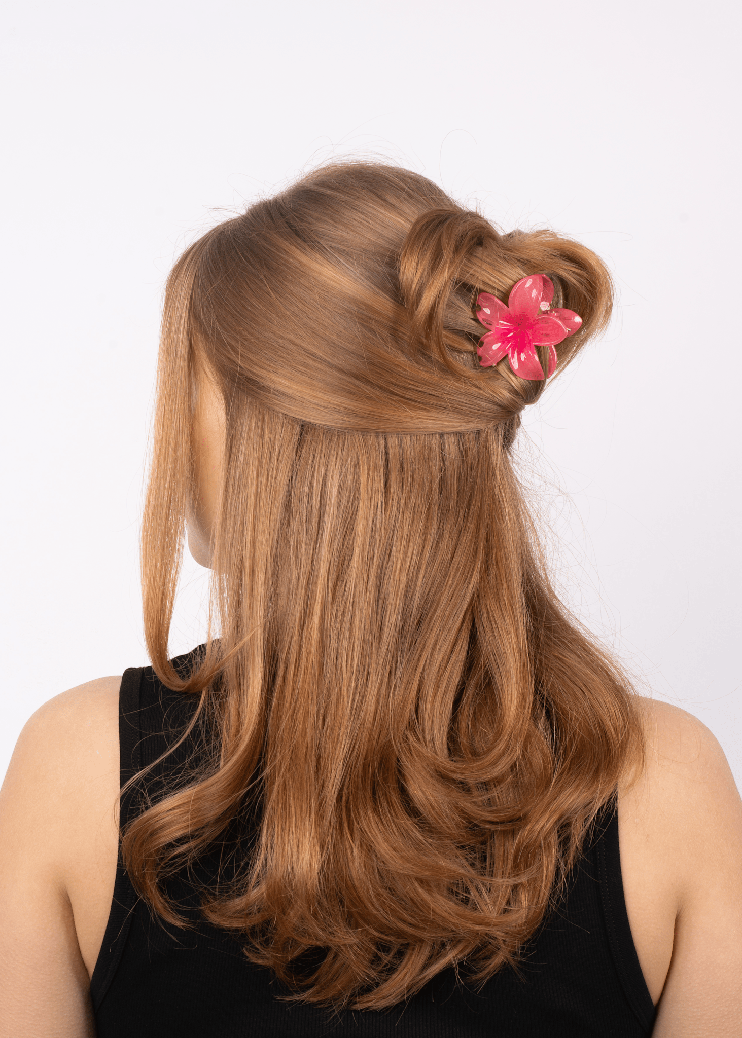 Use the clip to gather smaller sections of hair or as a decorative detail in loose hairstyles. The vibrant pink color adds a fresh and playful expression.