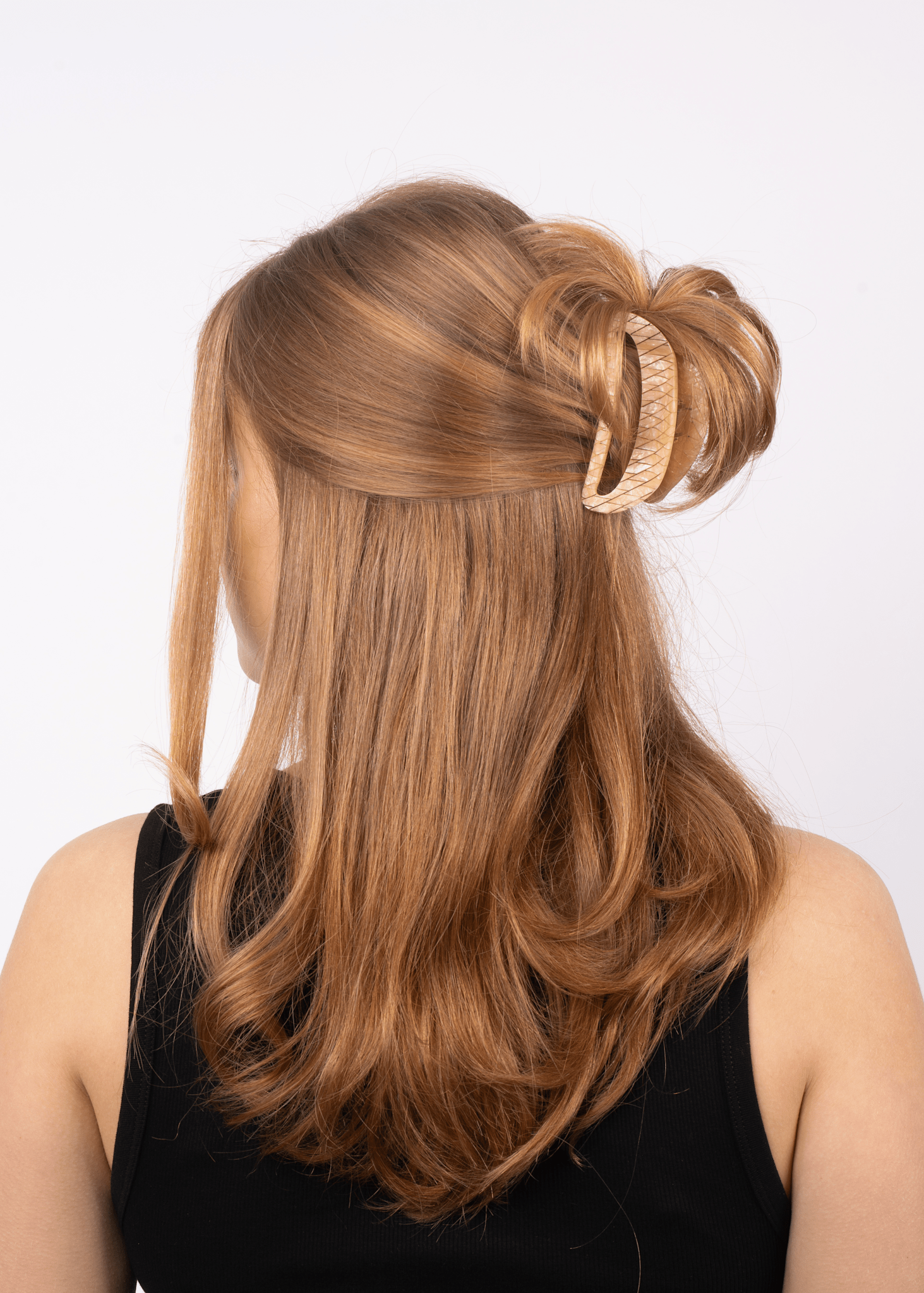 Use Theresa Crema Big to gather all your hair for a sleek look, or create a half-up style that combines a relaxed and elegant expression. It is perfect for holding long or thick locks securely all day.