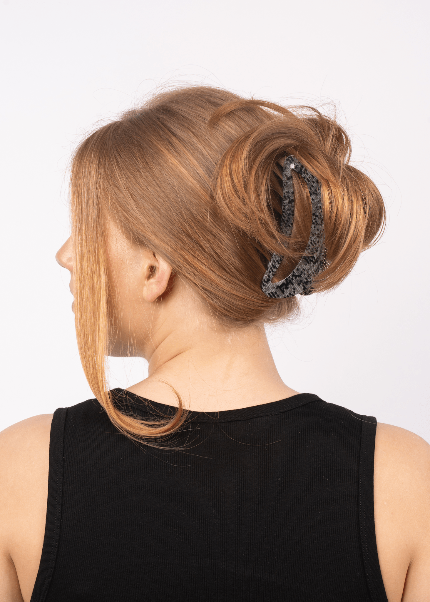 Theresa Oak Giga is a large hair claw full of personality. The striking grey and black marble pattern gives it a cool, modern look, while the transparent finish adds a little extra edge. Designed to hold securely - even in long or thick hair - its curved shape ensures it sits comfortably all day 🩶