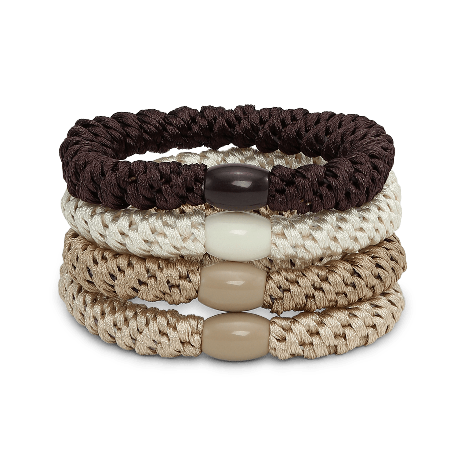 With the 4-Pack Basic Essentials Elastics, you get a versatile and gentle set of hair ties that combine practicality with an elegant and natural color palette.