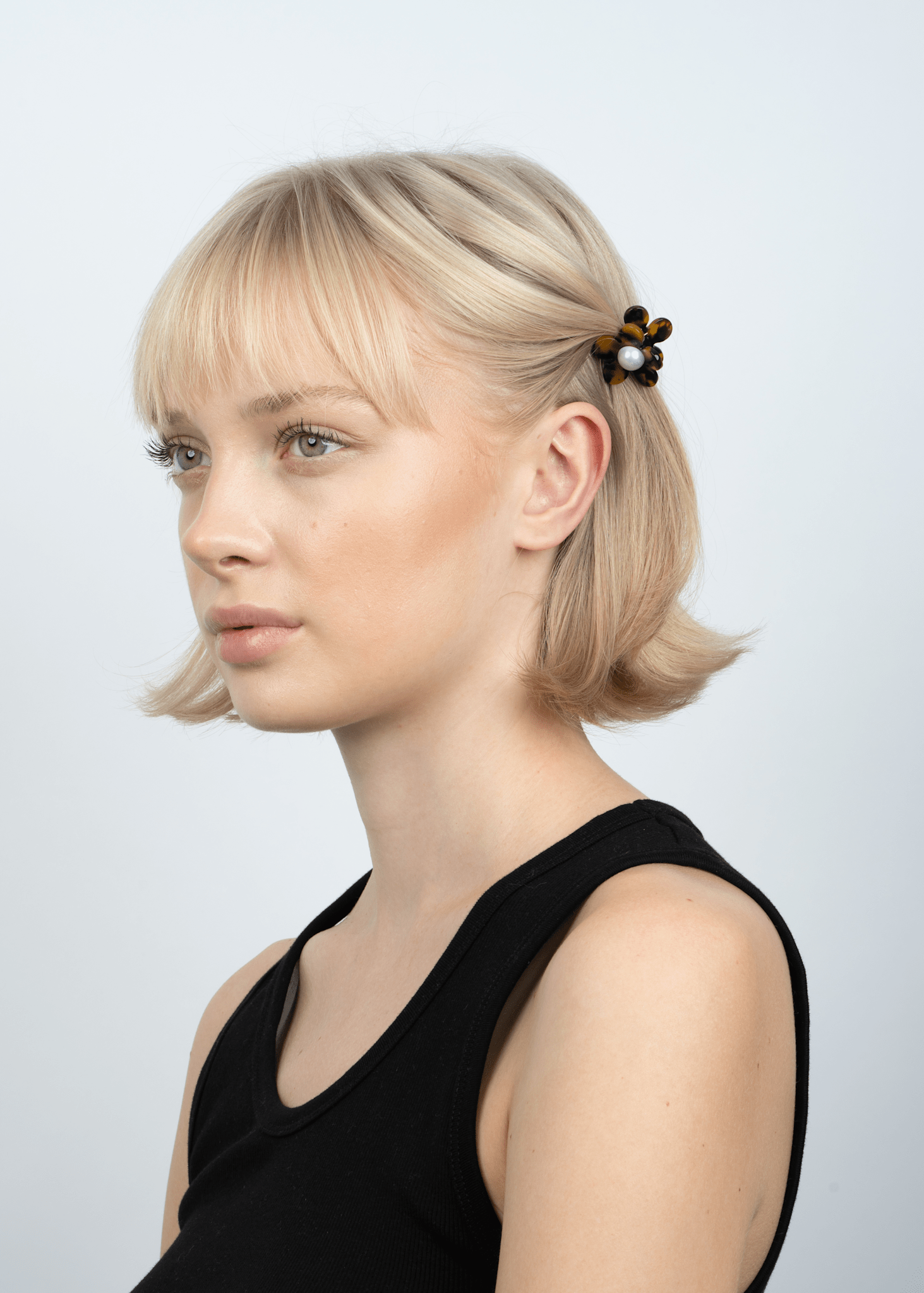 Use Eva Classic Flower Mini to keep small strands away from your face or as a pretty detail in an updo. It holds well and feels comfortable all day.