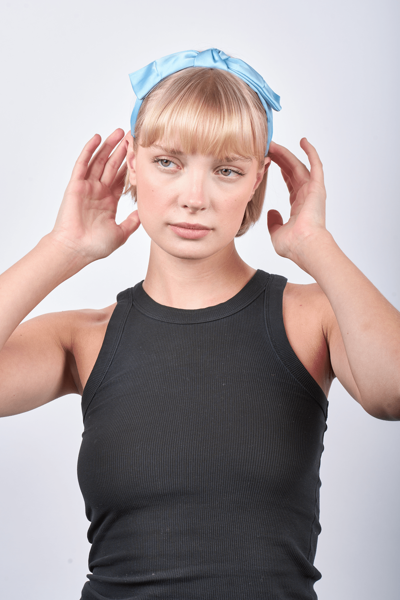 Add a feminine and romantic touch to your look with the Bow Headband in light blue. The soft color and delicate bow detail create an elegant and light expression, perfect for everyday wear 🩵