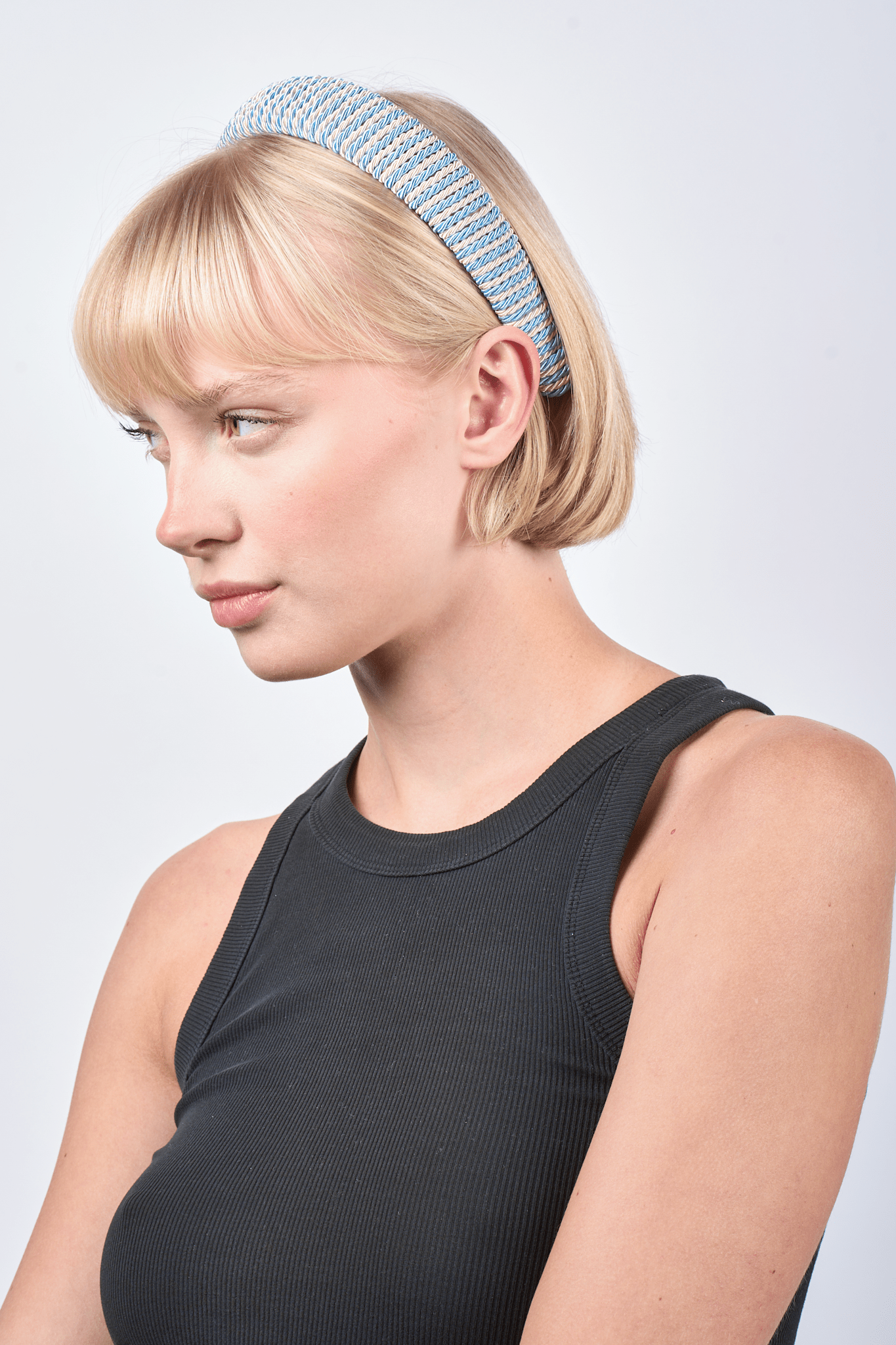 Upgrade your look with the Striped Headband in a beautiful blue shade.