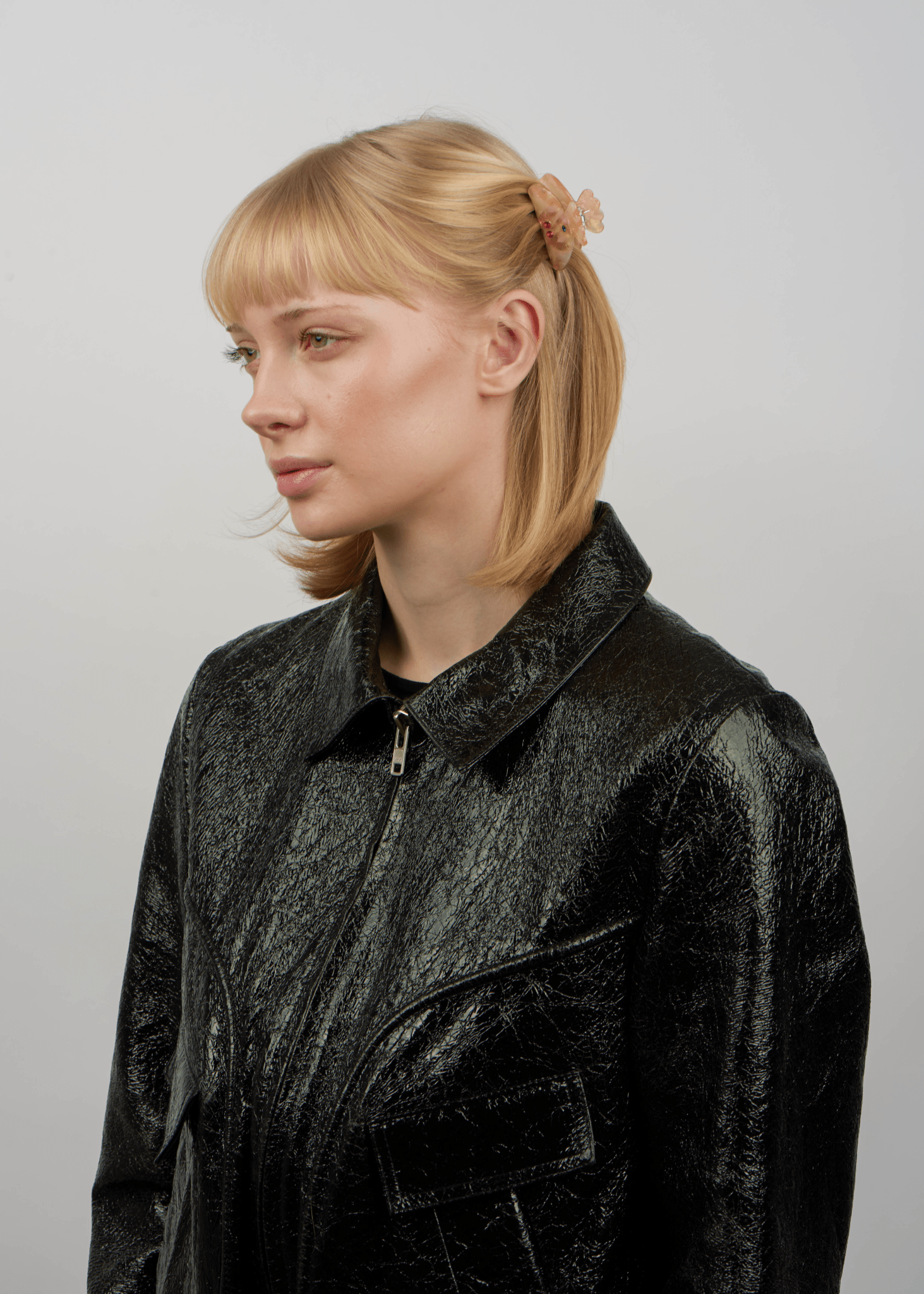 Meet Cherry Up Mini in a fresh and soft peach shade - ready to bring smiles and style to your hair. The transparent acrylic claw is decorated with small cherry-shaped stones and delicate glitter details that reflect light and add a playful finish 🍑