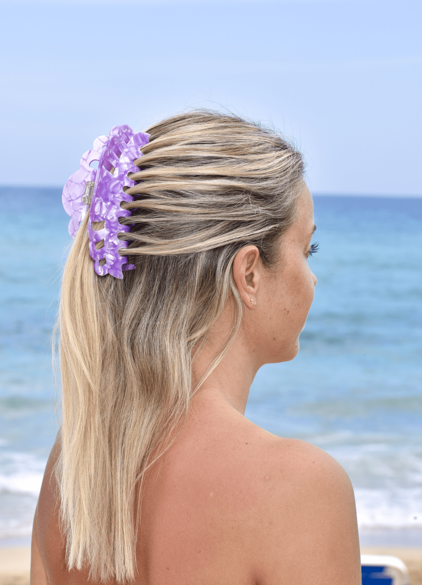 Emma Salty Tan Giga in purple is the perfect hair clip for those with thick or long hair. The beautiful purple shade adds a stylish and modern touch, while the oversized size ensures an extra strong hold - ideal for keeping even the fullest hair securely in place 💜