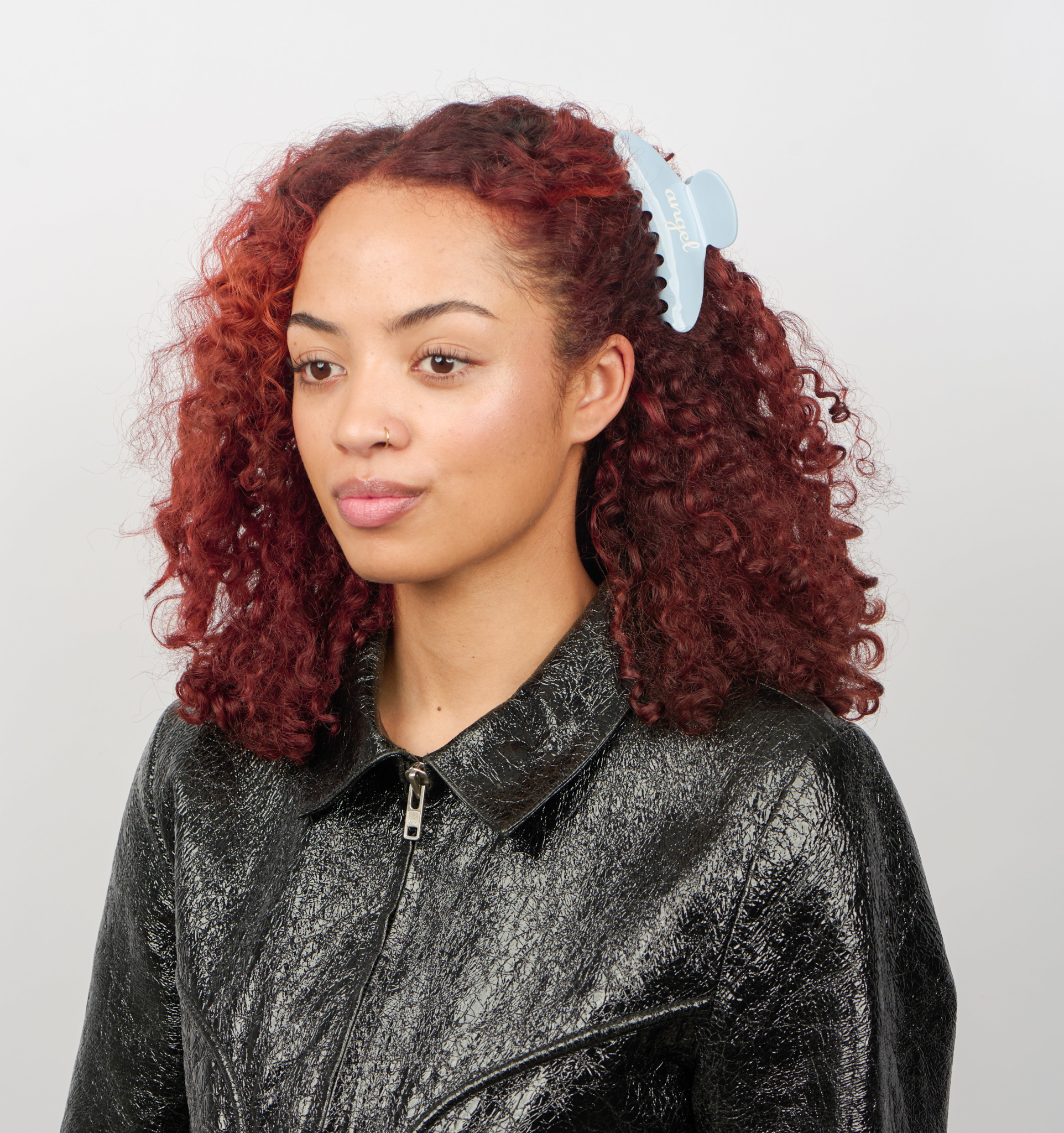 Ida Text Big is a large hair claw in a lovely light blue shade with the word “angel” printed in white. It’s sweet, simple, and perfect for adding a bit of personality to your hairstyle 🩵