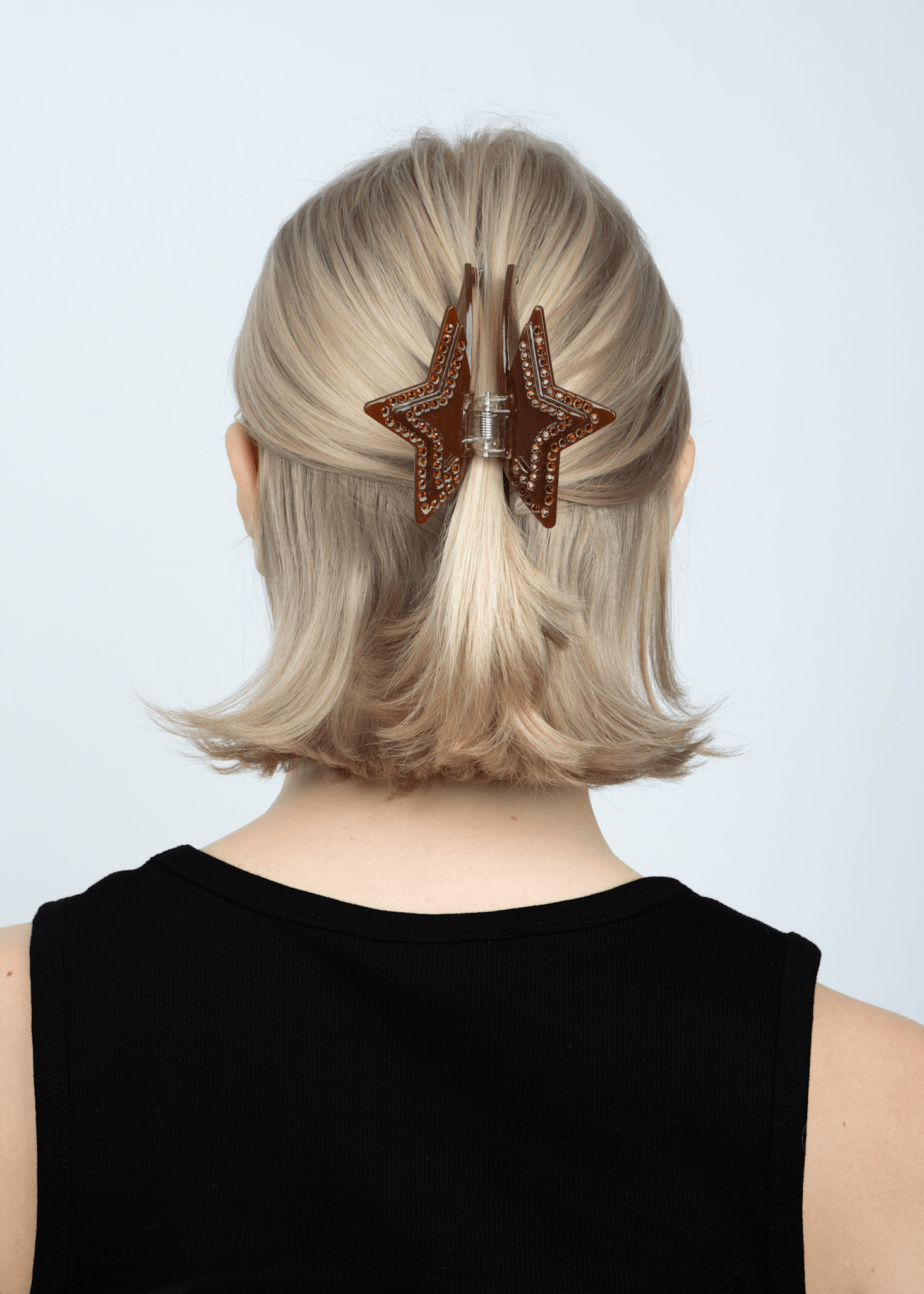 Bring a little stardust into your everyday with Stacy Star Big - a standout hair claw with its signature star shape and sparkling rhinestones. The warm brown colour and playful design give it a cool, whimsical vibe, while the strong spring ensures a firm grip on both long and thick hair ⭐️