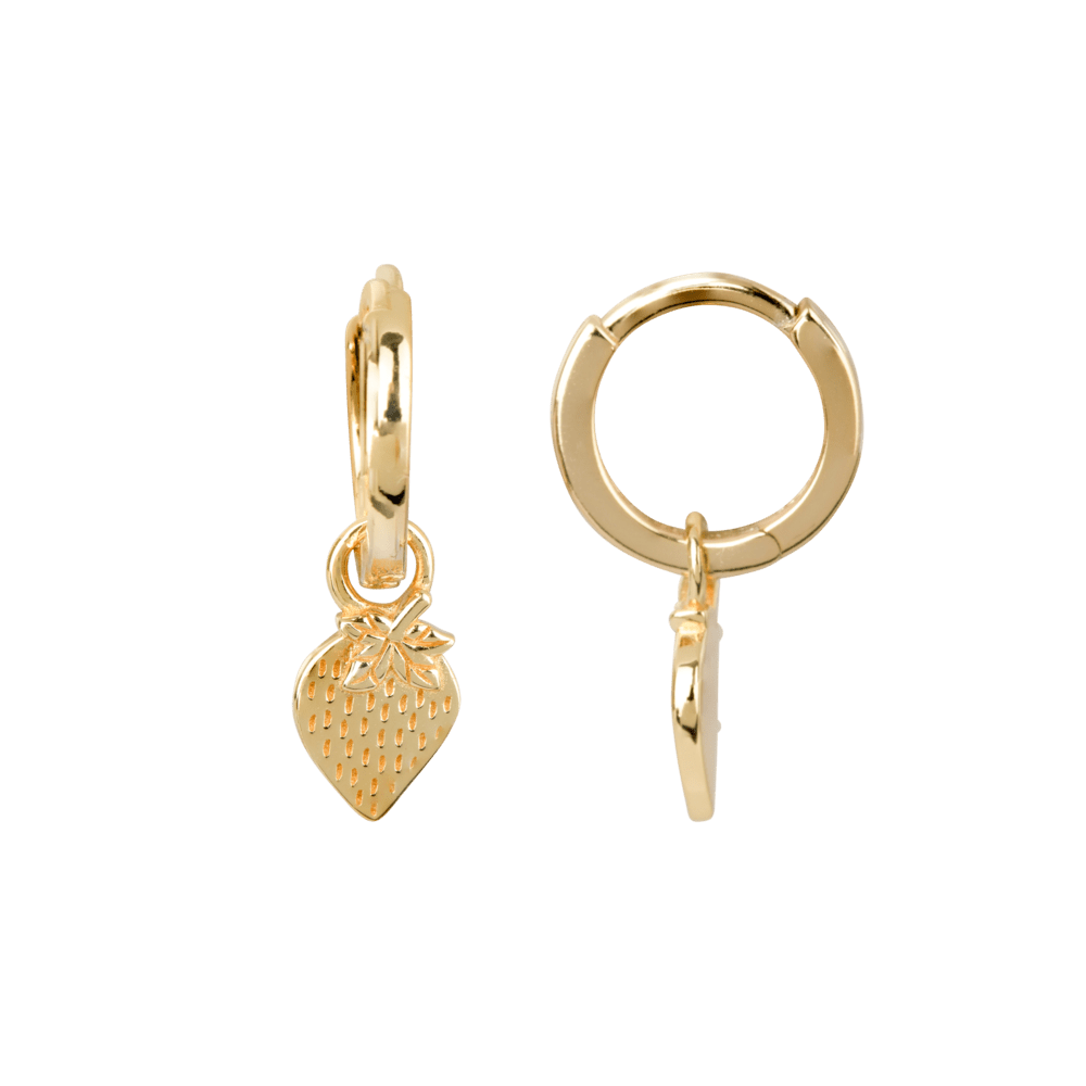 Fine og enkle øreringe med jordbær i 14k guldbelagt sølv.