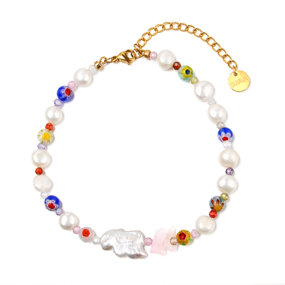 Materiale: Pearl Azure stones, Zircon beads, Brass beads & gold plated brass