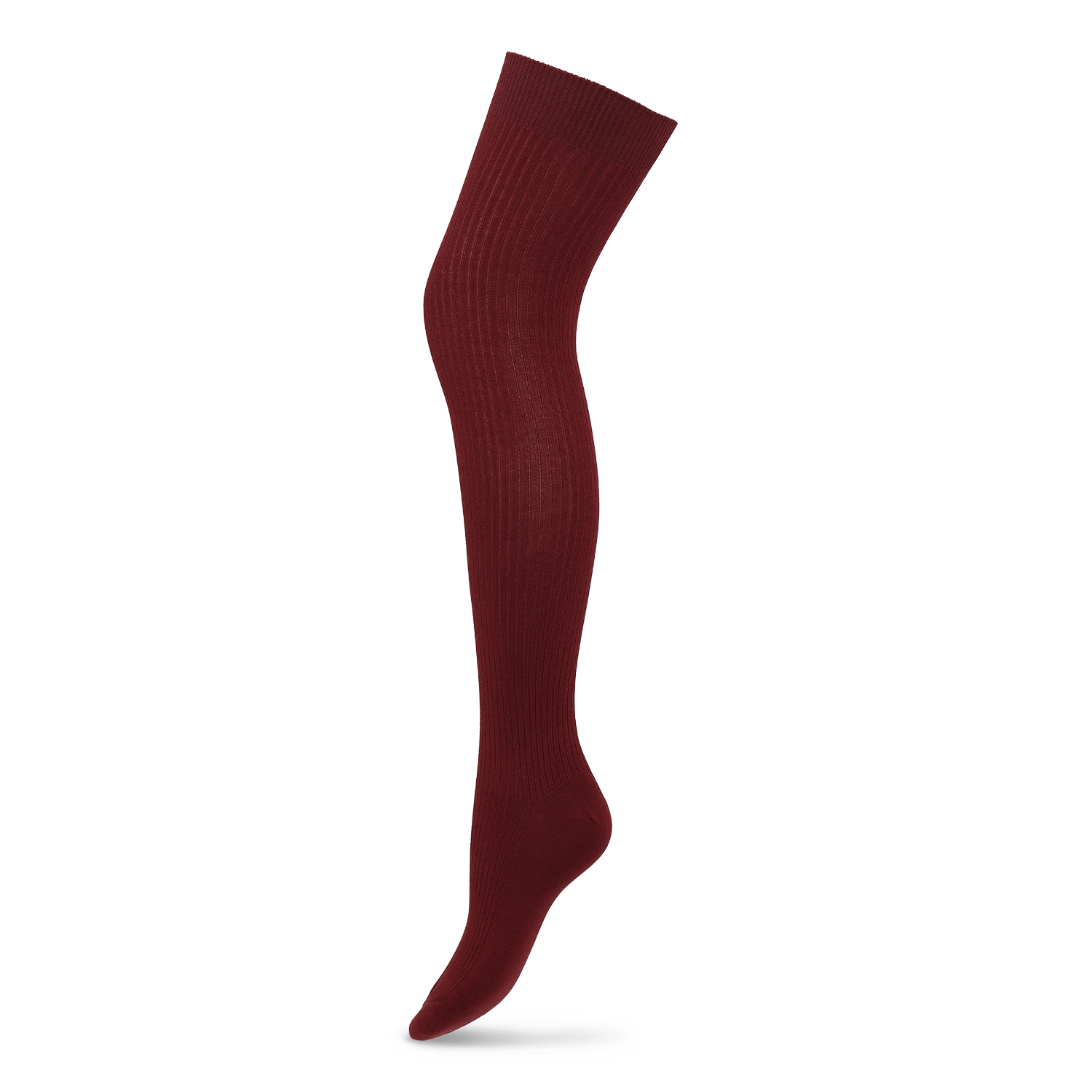 Add a touch of warmth and color to your outfits with these burgundy over-the-knee socks. Their soft, ribbed texture feels comfortable while looking stylish. A perfect choice for cooler days when you want to combine comfort with a personal twist 🍇
