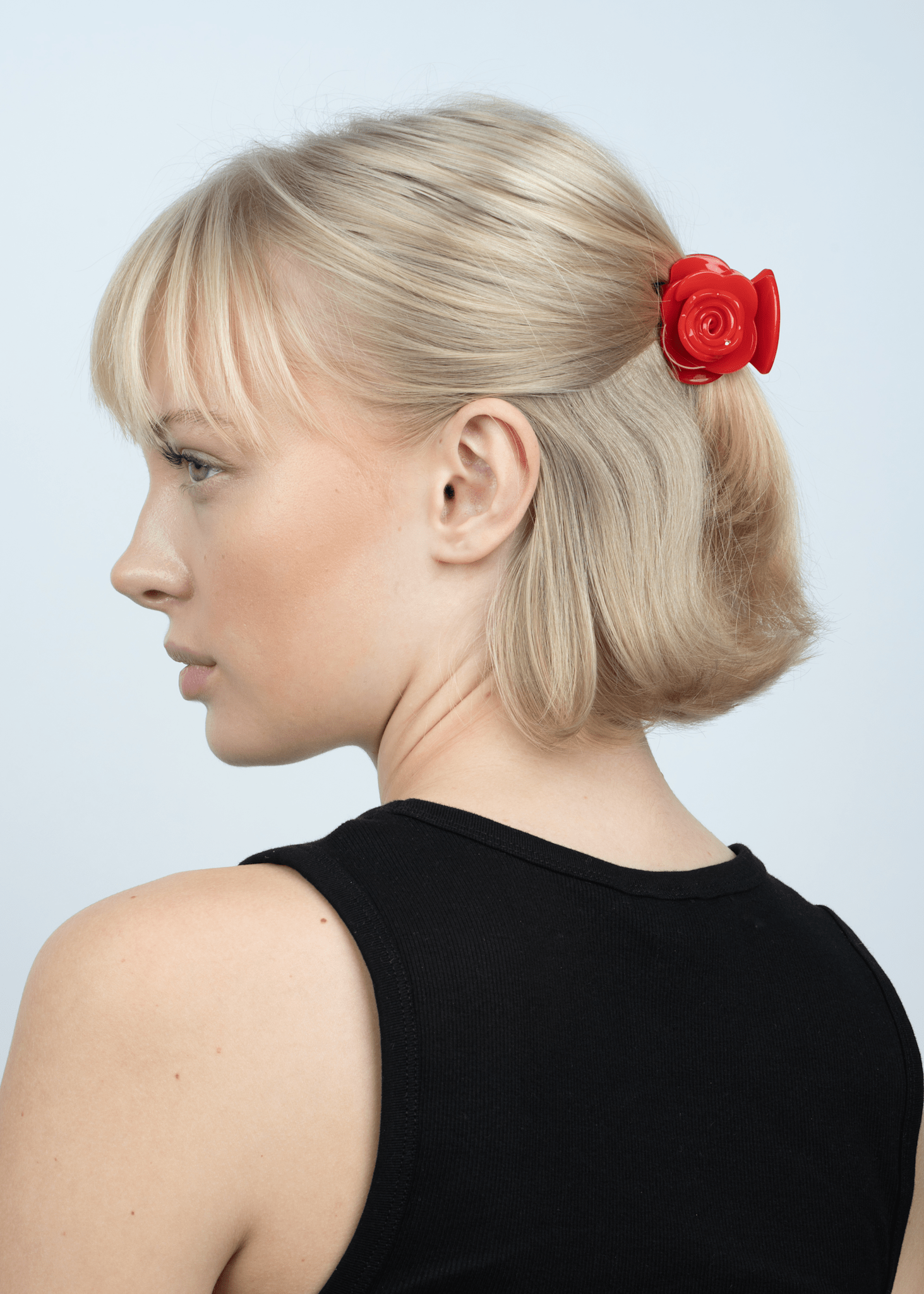 Rosie Mini in red is a decorative and elegant hair claw, shaped like a beautifully sculpted rose. The bold red hue adds a daring yet romantic touch, while the compact size makes it ideal for fine hair or securing small sections 🌹