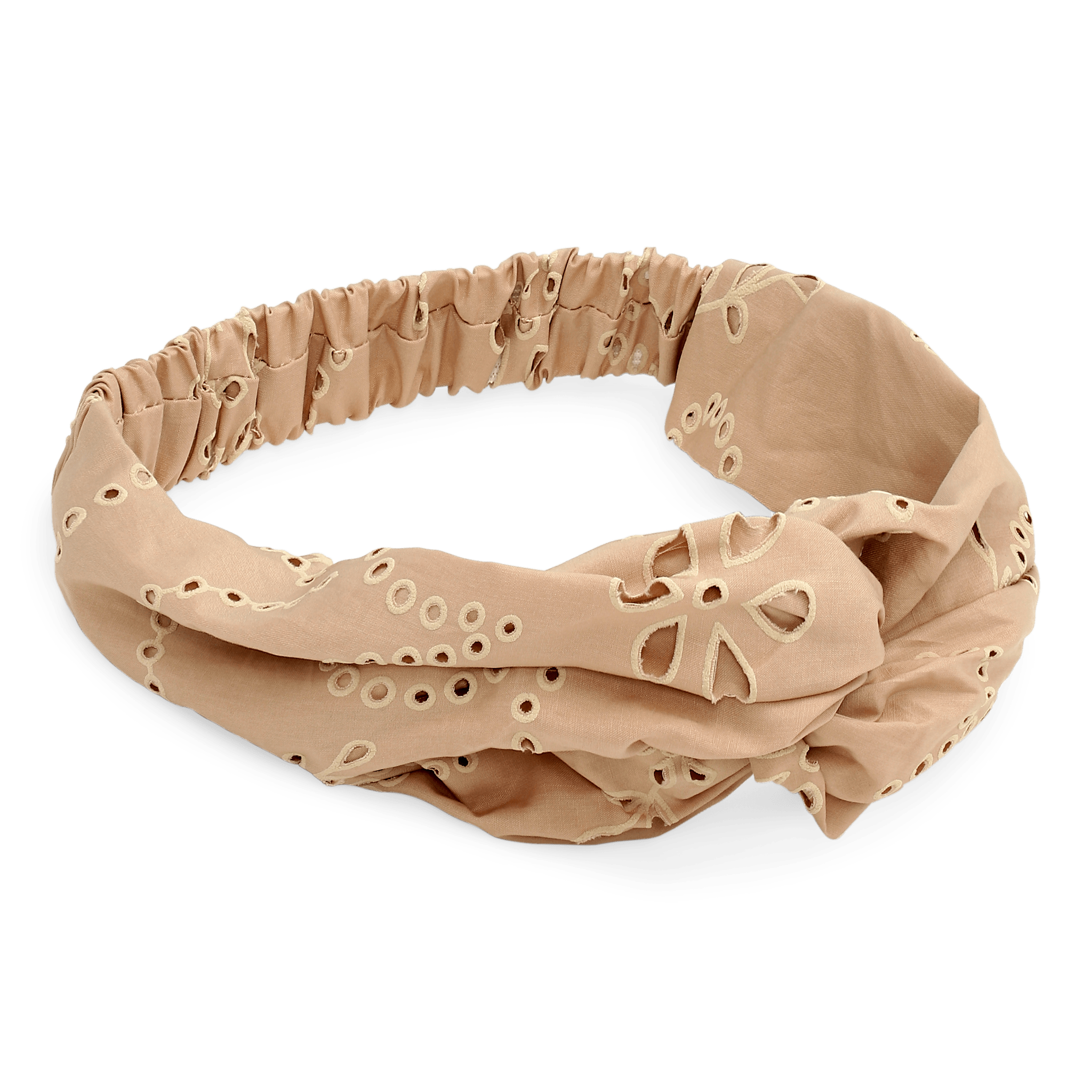 Floral Broderie Twist Headband in Salted Caramel is a vintage-inspired headband in a warm brown shade with delicate embroidered details 🍯🤎