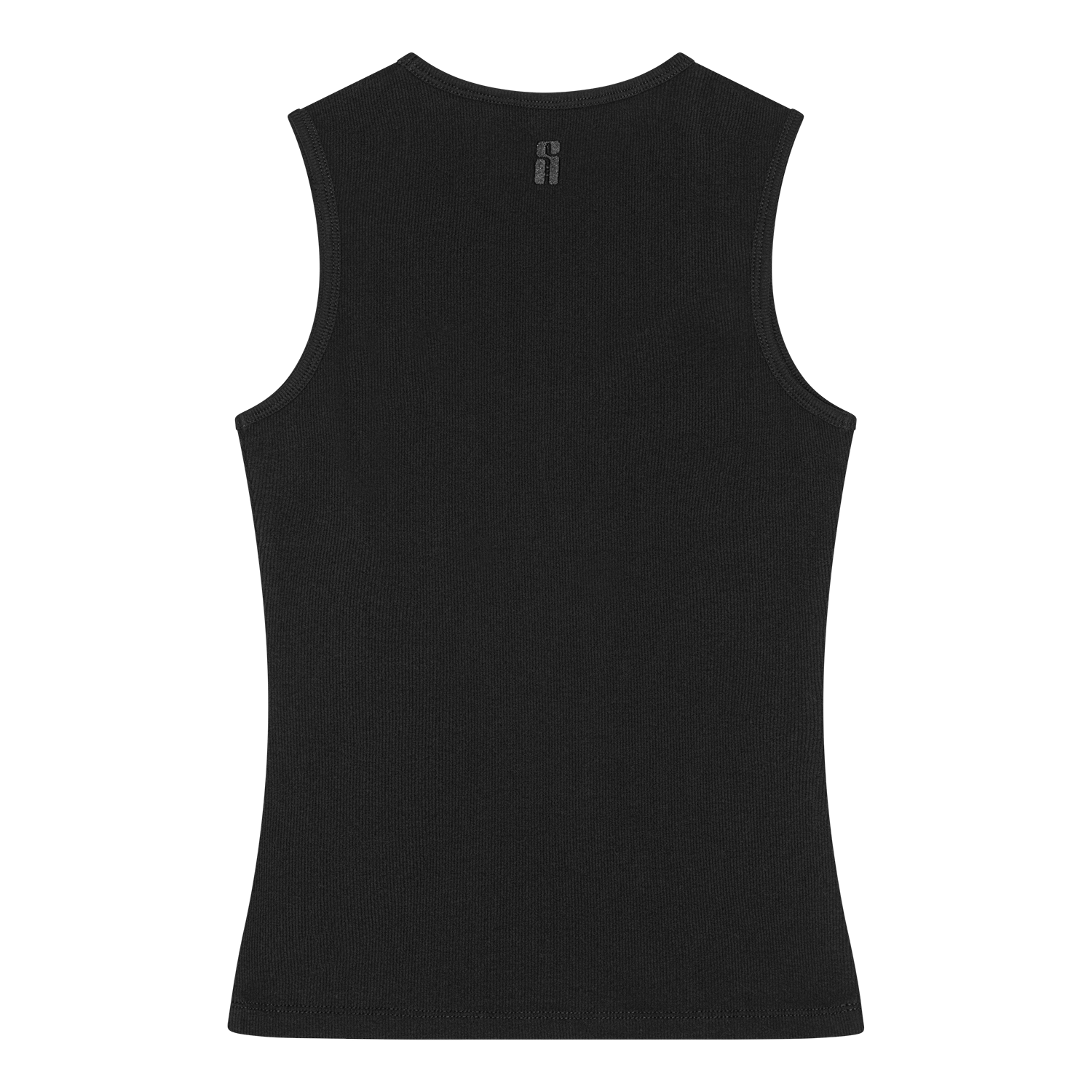 Sort ribbet tanktop fra SUI AVA med rund halsudskæring og tætsiddende pasform.