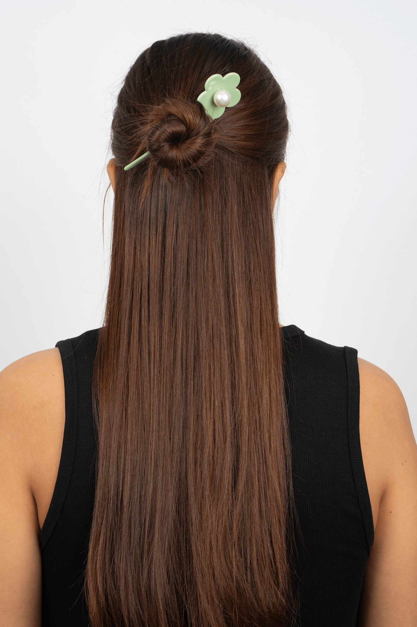 Eva Flower Pearly Clip in green is a fresh and stylish hair clip shaped like a beautiful flower with an elegant pearl in the center. The vibrant green color brings a natural and playful touch to your hairstyle - perfect for adding a pop of color 🌼🌿