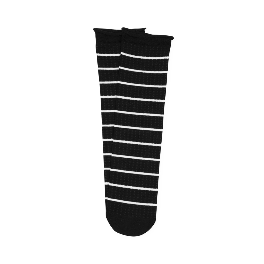Favorite Socks in Black with White Stripes combine comfort and statement in the finest way. The wide, horizontal stripes give the socks a sporty and eye-catching look, while the transparent mesh creates a light and feminine feel. A perfect choice when you want to add a little extra to your styling - without overdoing it 🖤