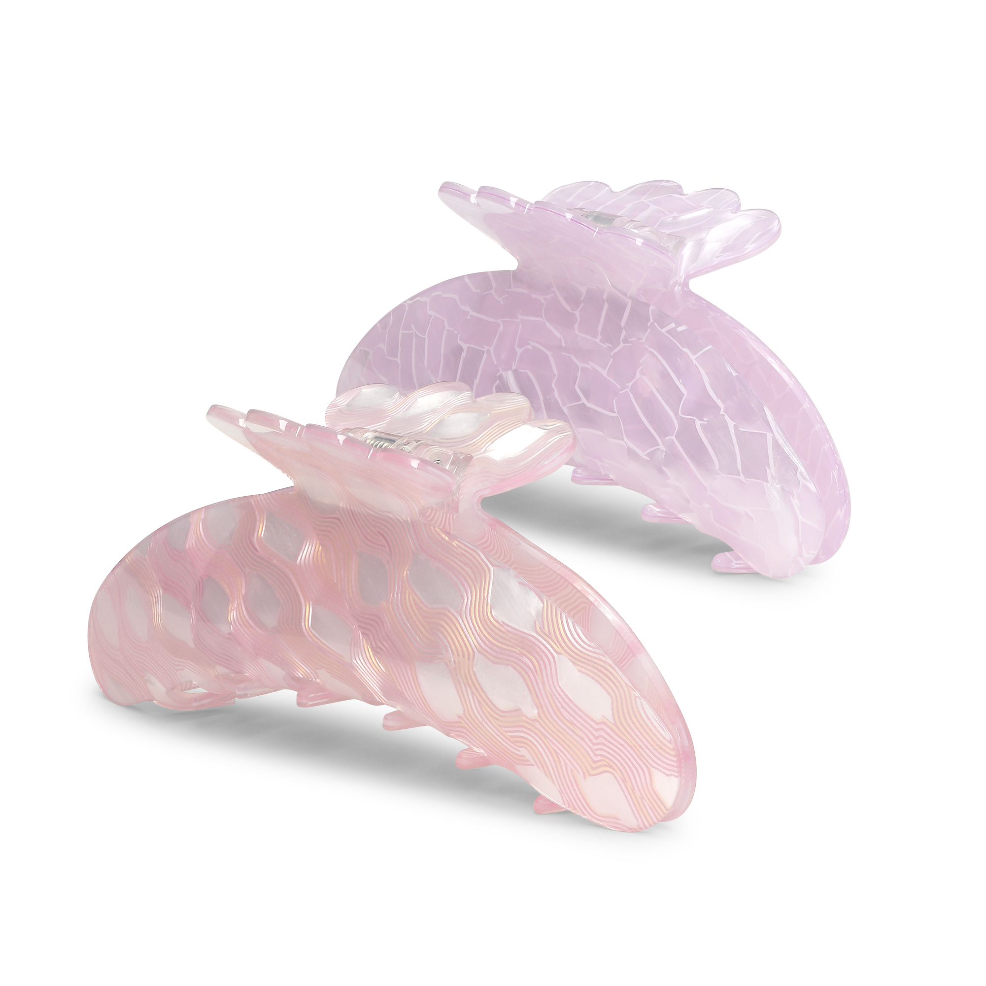 Helle Bunny Biggest – en stor hårklemme i transparent pastel pink med bølgende marmorerede linjer i mønsteret. Perfekt til langt og kraftigt hår. Komposition: Acetate.