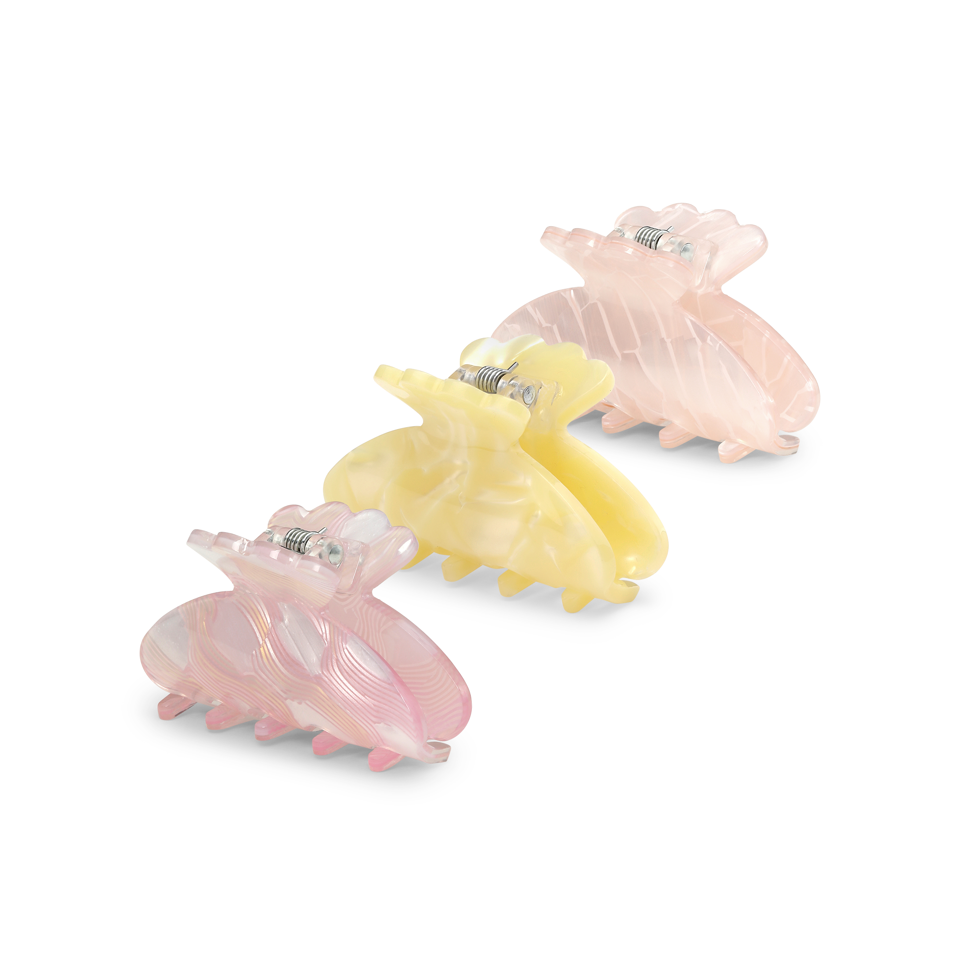 Helle Eggstra Mini Warm Bundle er en kombination af små hårklemmer i fine varme pastelnuancer. Her får du tre mini hårklemmer, der er perfekt til pandehår, sideskilningdetalje eller som en detalje i en flettet frisure. Lille, men med stor effekt.