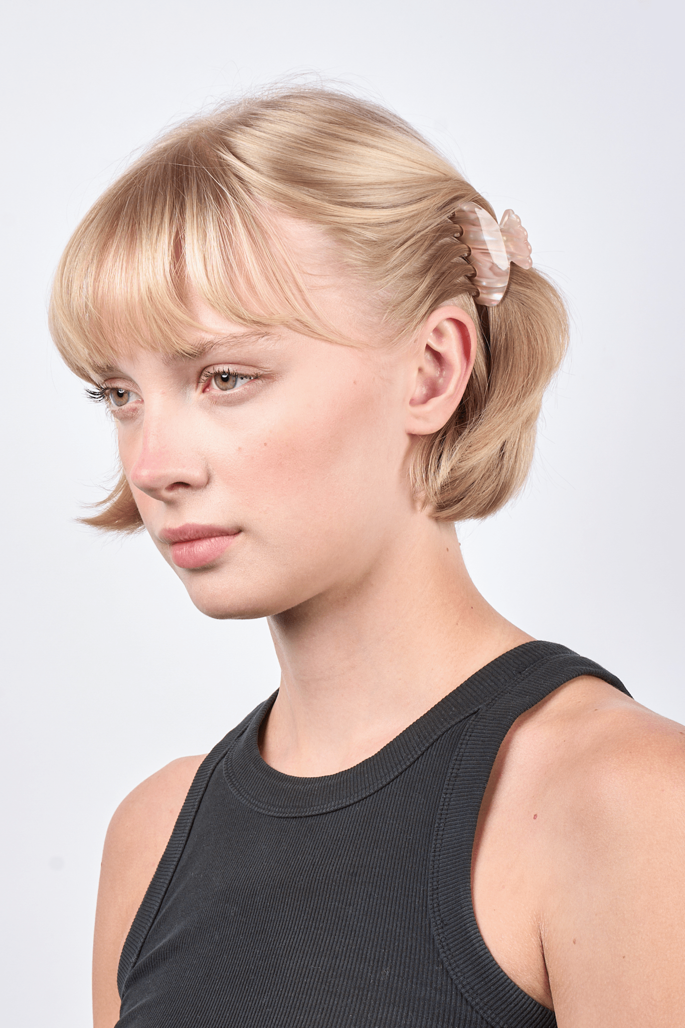 Helle Fresh Mini is a small and stylish hair claw that adds a fresh and feminine touch to your hairstyle. With its beautiful rose color and compact size, it’s perfect for holding fine hair or small sections in place. Whether you want to brighten up your everyday look or add a subtle detail to your hairstyle, this claw is a must-have 🌸