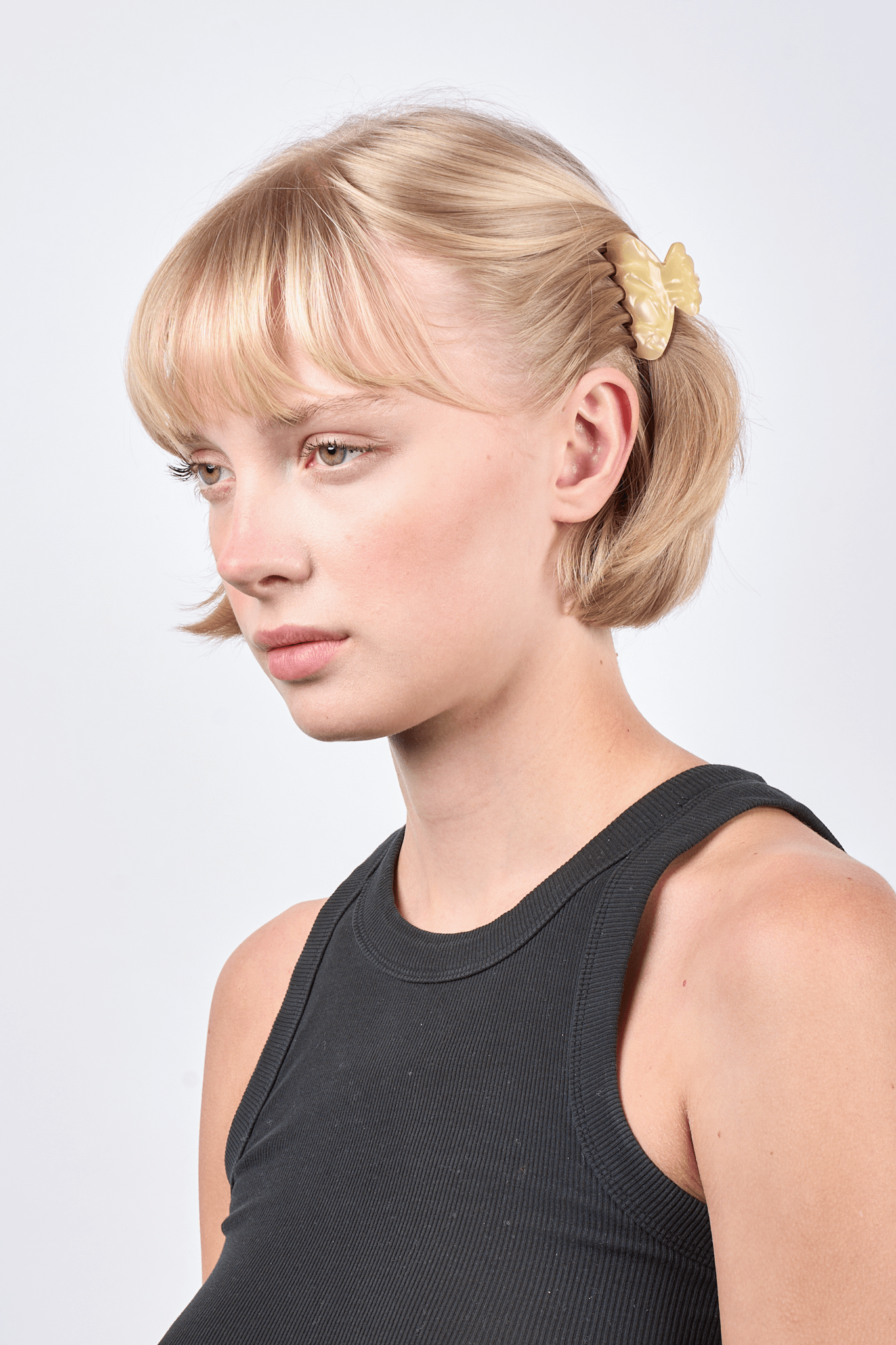 Use the clip to keep small hair sections away from your face or as a decorative detail in an updo. The warm yellow shade adds a fresh and modern look.