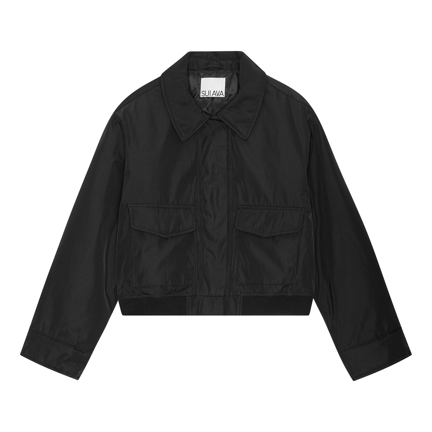 The material is lightweight and smooth with a comfortable feel, making the jacket perfect for layering – over knits, T-shirts, and dresses alike. The fit is slightly oversized, giving it an effortless expression whether styled sporty or more minimalist.