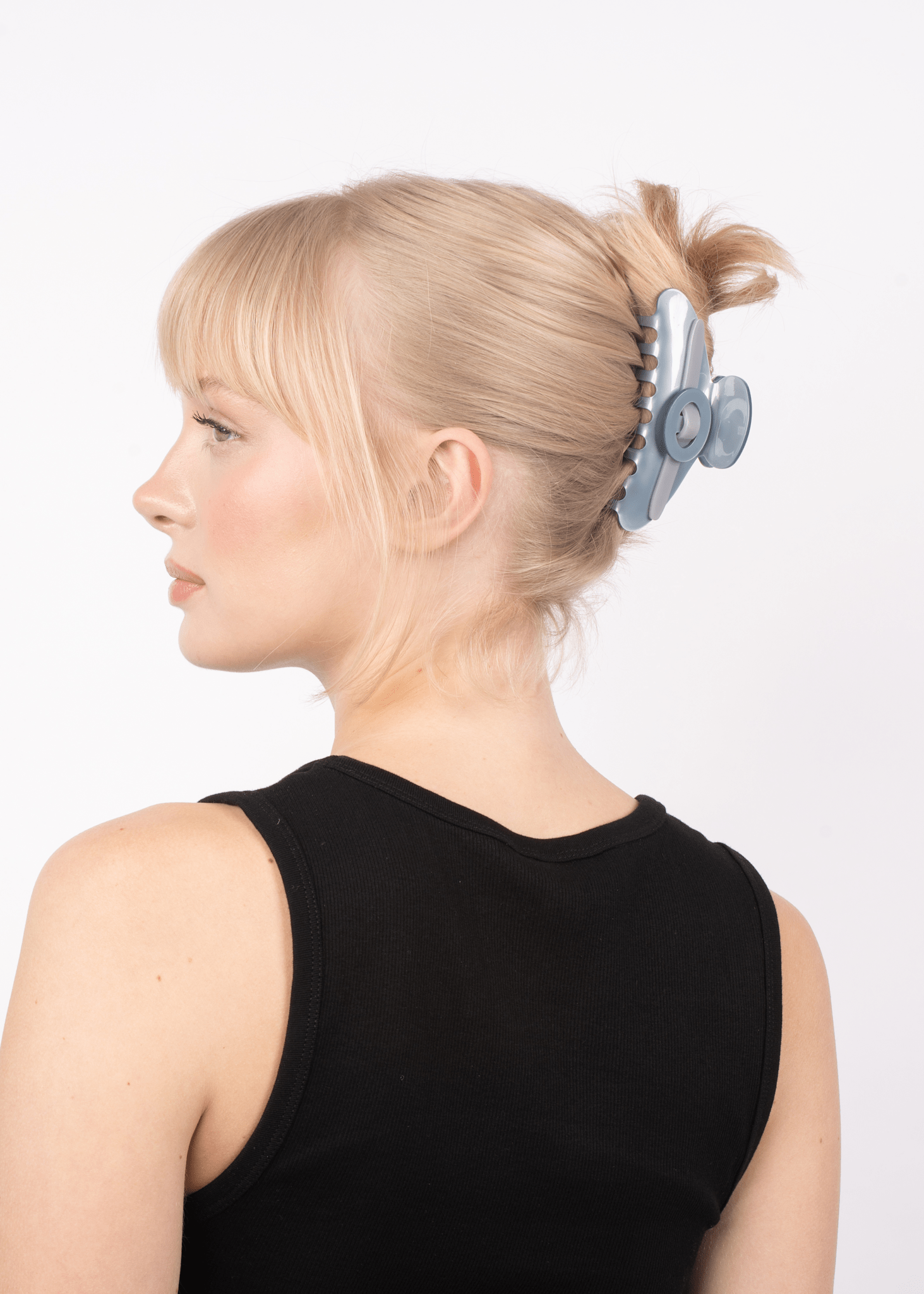 Ida Rope Big is an elegant hair claw with a cool, minimalist look. The dusty light blue color and matching rope detail in the center create a harmonious look that feels both modern and effortless 🩵